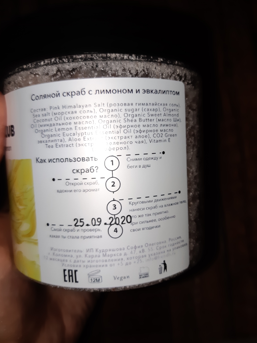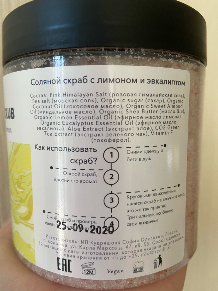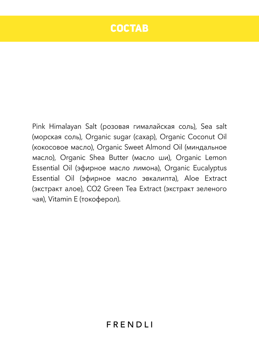 Frendli Соляной скраб для тела с лимоном, эвкалиптом и розовой гималайской солью
