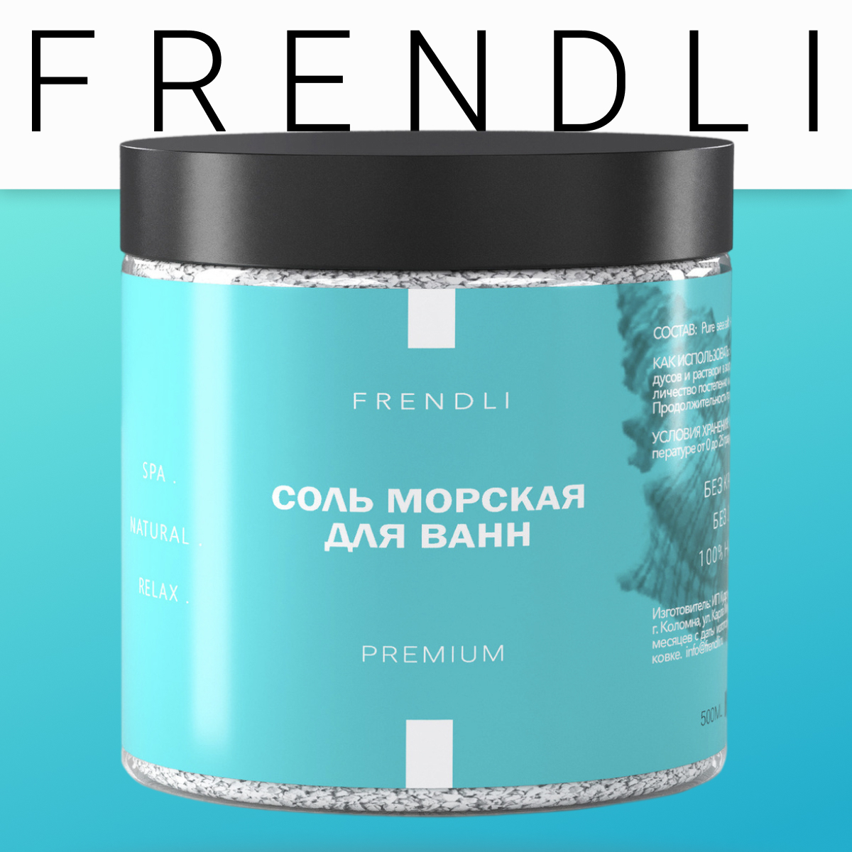 Frendi, Морская соль для ванны натуральная из средиземного моря, натуральная косметика, 500 гр