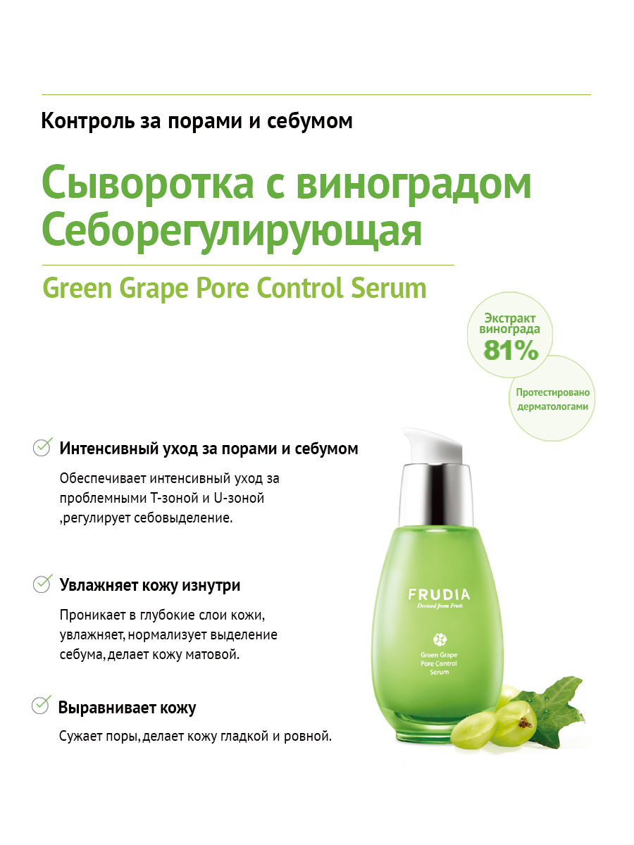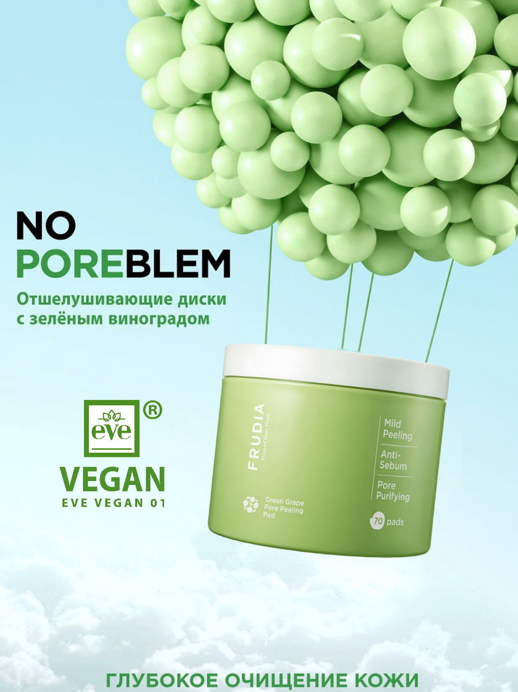 FRUDIA Отшелушивающие диски с зеленым виноградом Green Grape Pore Peeling Pad, 70шт*3мл