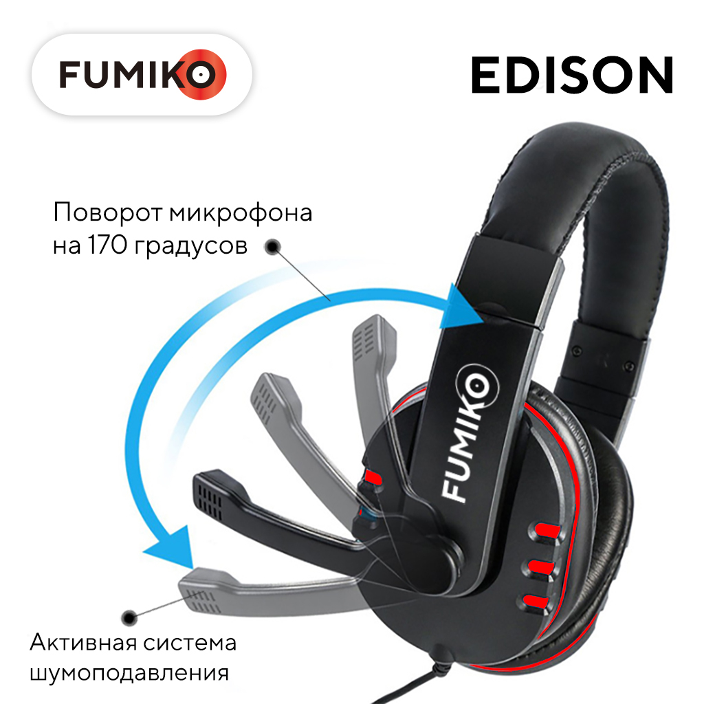 Наушники для компьютера/ Игровые наушники/ Компьютерная гарнитура FUMIKO EDISON черные