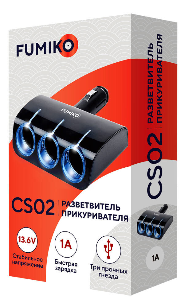 Разветвитель прикуривателя FUMIKO CS02 3 АЗУ 1А черный