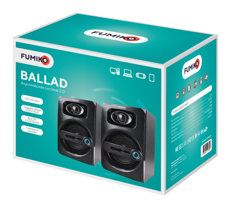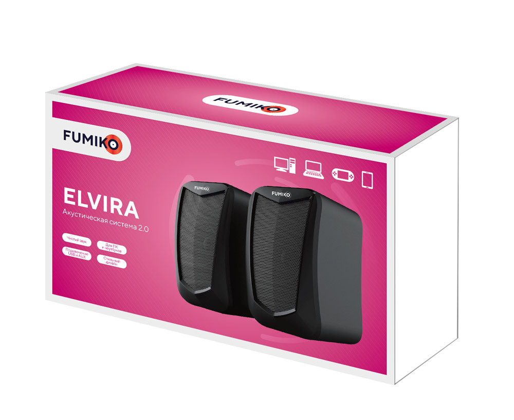 Колонки 2.0 FUMIKO ELVIRA черные, 6 Вт, питание от USB Акустическая система / Колонки компьютерные