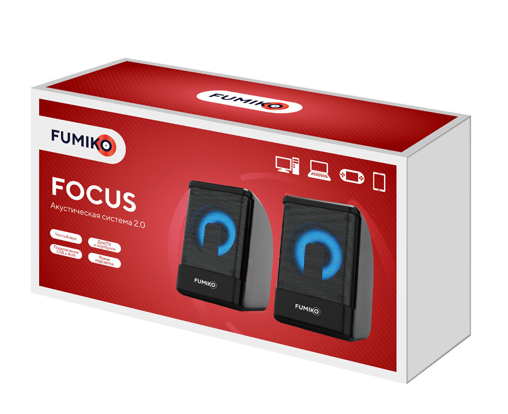 Колонки 2.0 FUMIKO FOCUS с подсветкой черные