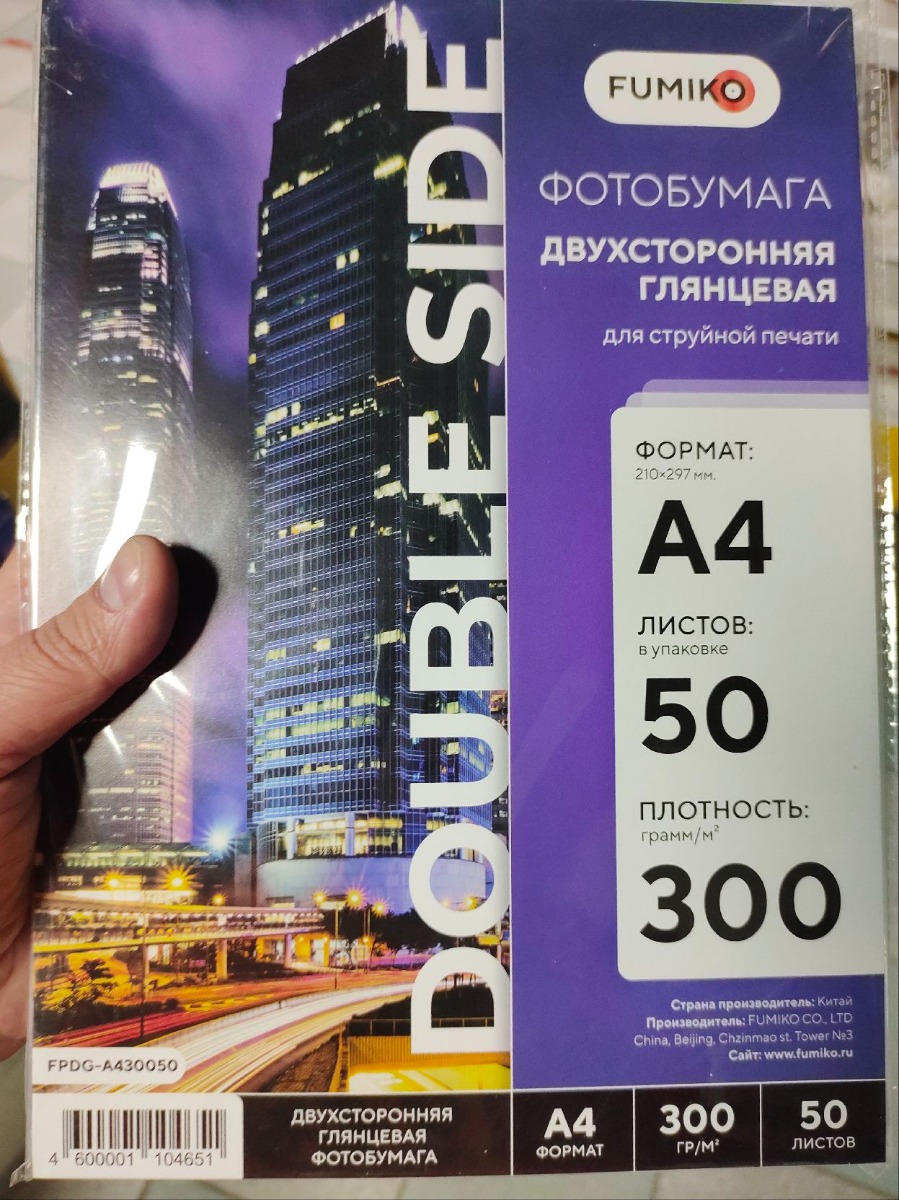 Фотобумага FUMIKO матовая двухсторонняя 220г/А4/100л