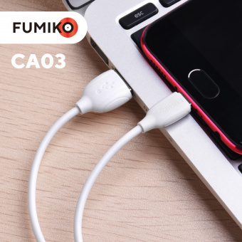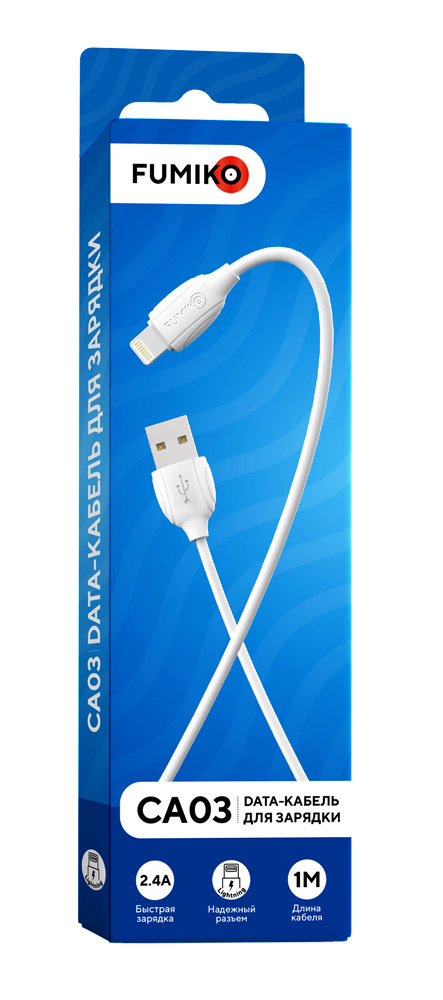 Кабель для зарядки iPhone, iPad, AirPods, iPod, USB - Lightning FUMIKO CA03 Lightning 2.4A белый 1 м