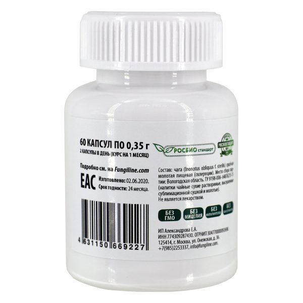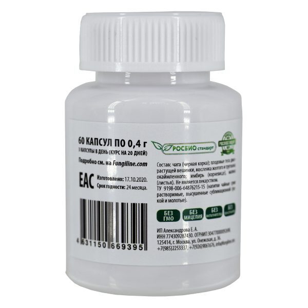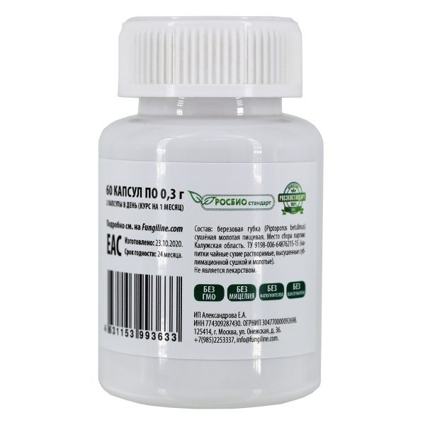 Трутовик лиственничный 60 капсул. Грибная аптека Михаила Вишневского. FUNGILINE