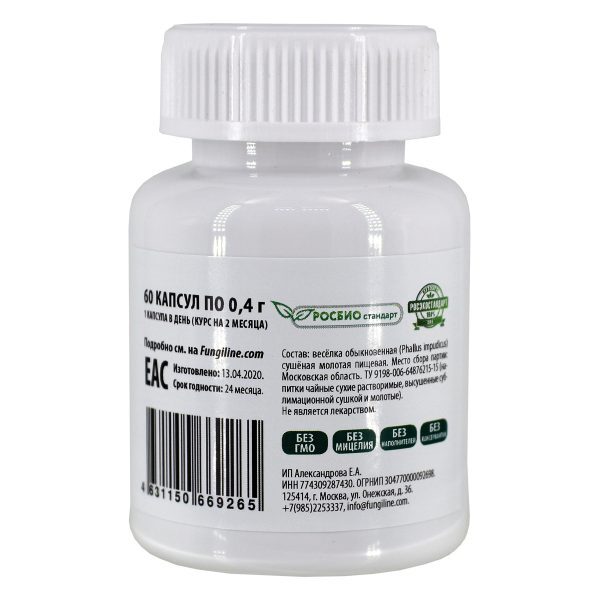 Весёлка FUNGILINE / Грибы сушеные / Грибная аптека Михаила Вишневского, капсулы 60 штук