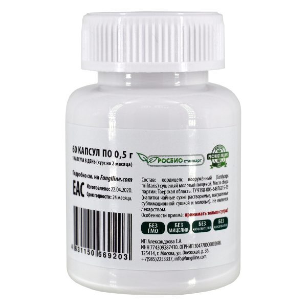 Русский кордицепс FUNGILINE / Грибы сушеные / Грибная аптека Михаила Вишневского, капсулы 60 штук