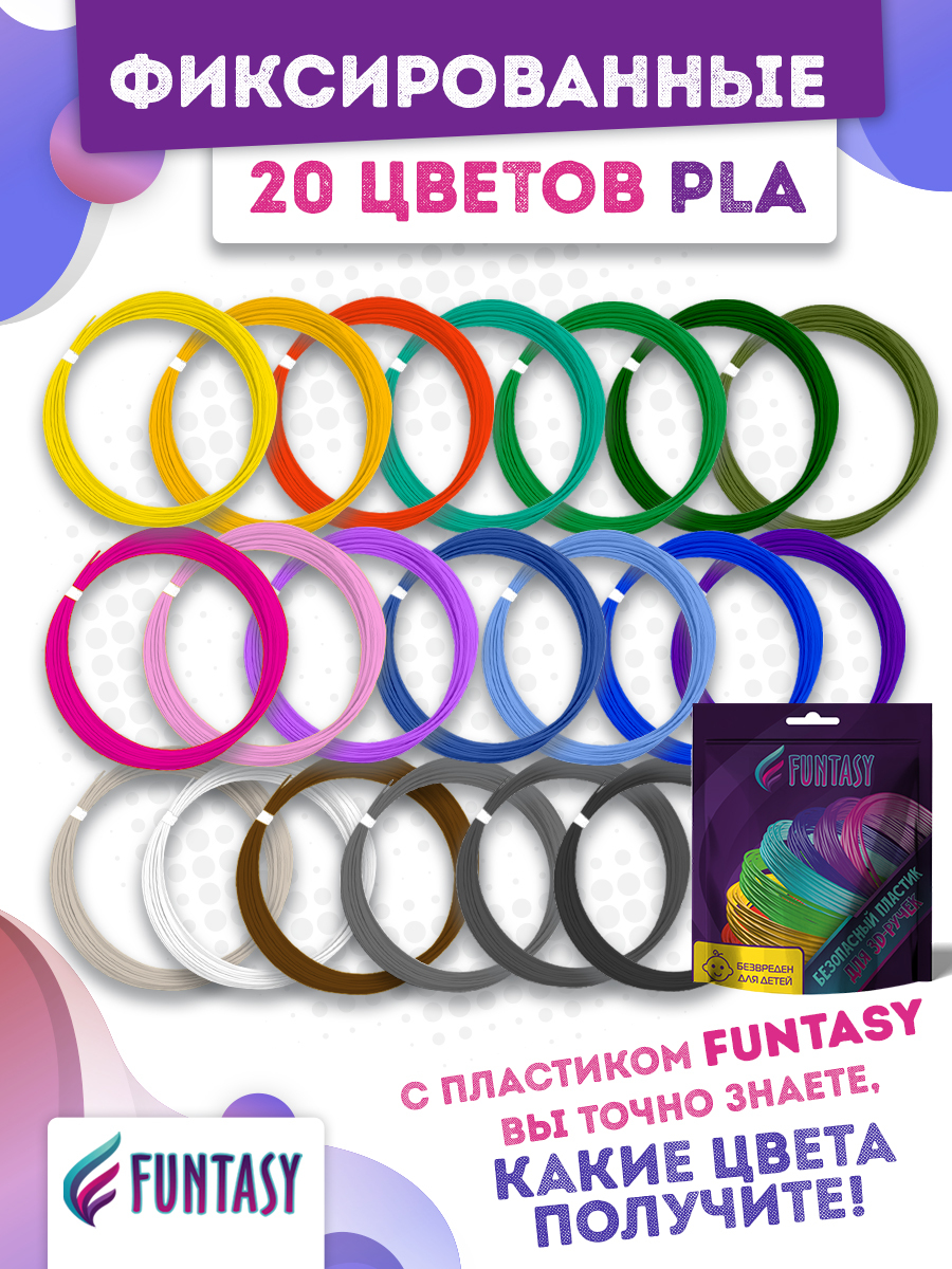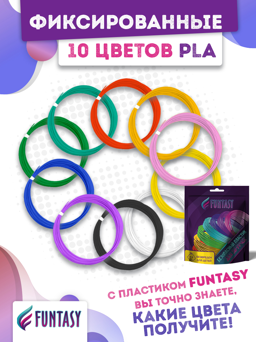 Пластик для 3D ручки Funtastique (10 цветов по 10 метров) для 3д ручки