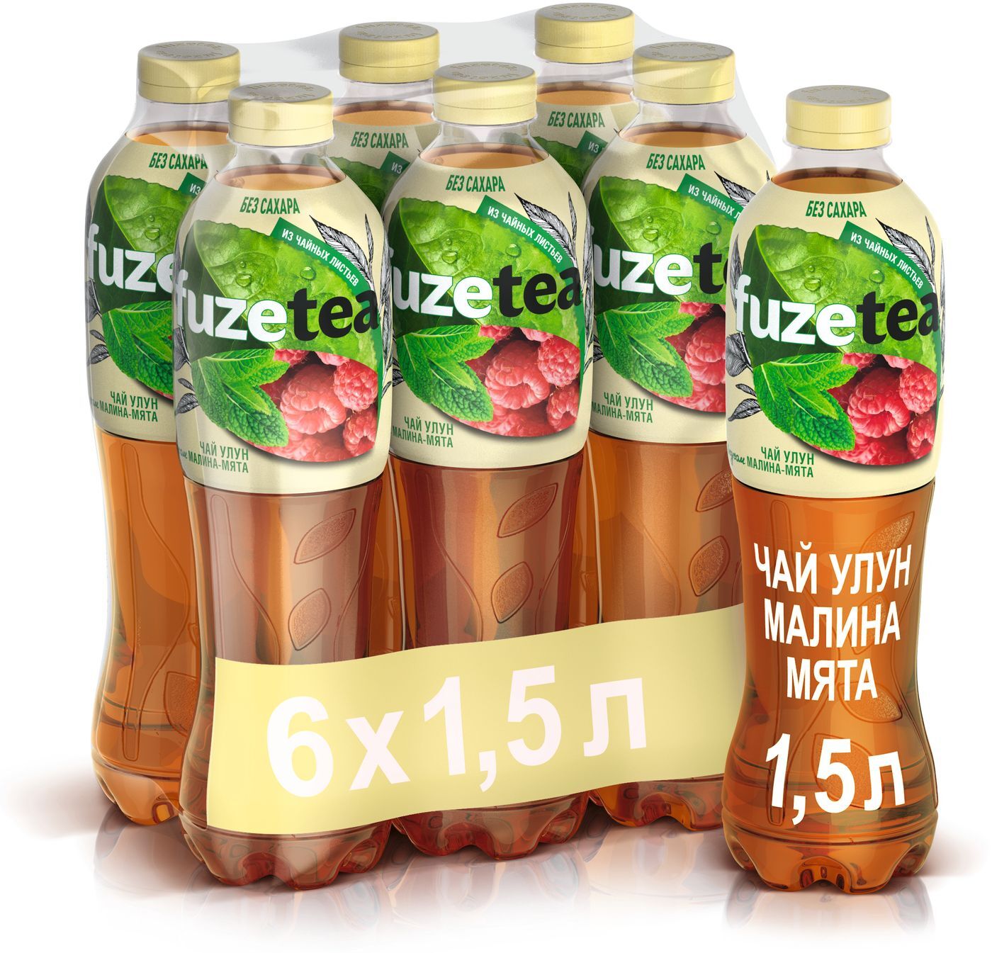 Холодный чай Fuzetea Зеро, зеленый, со вкусом малина-мята, 6 шт по 1,5 л