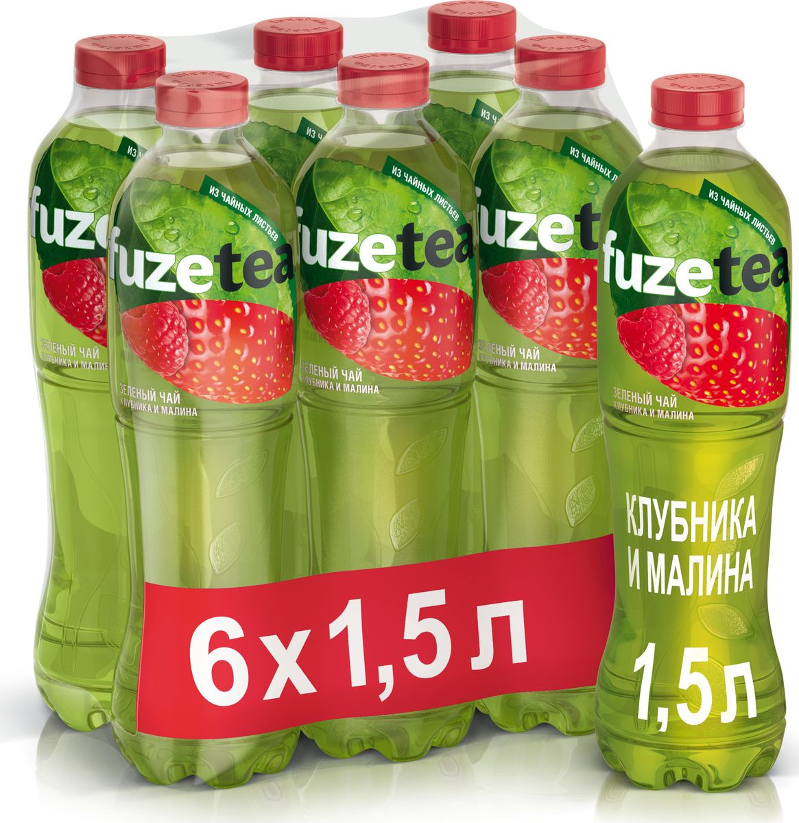 Холодный чай Fuzetea Клубника и малина, зеленый, 6 шт по 1,5 л