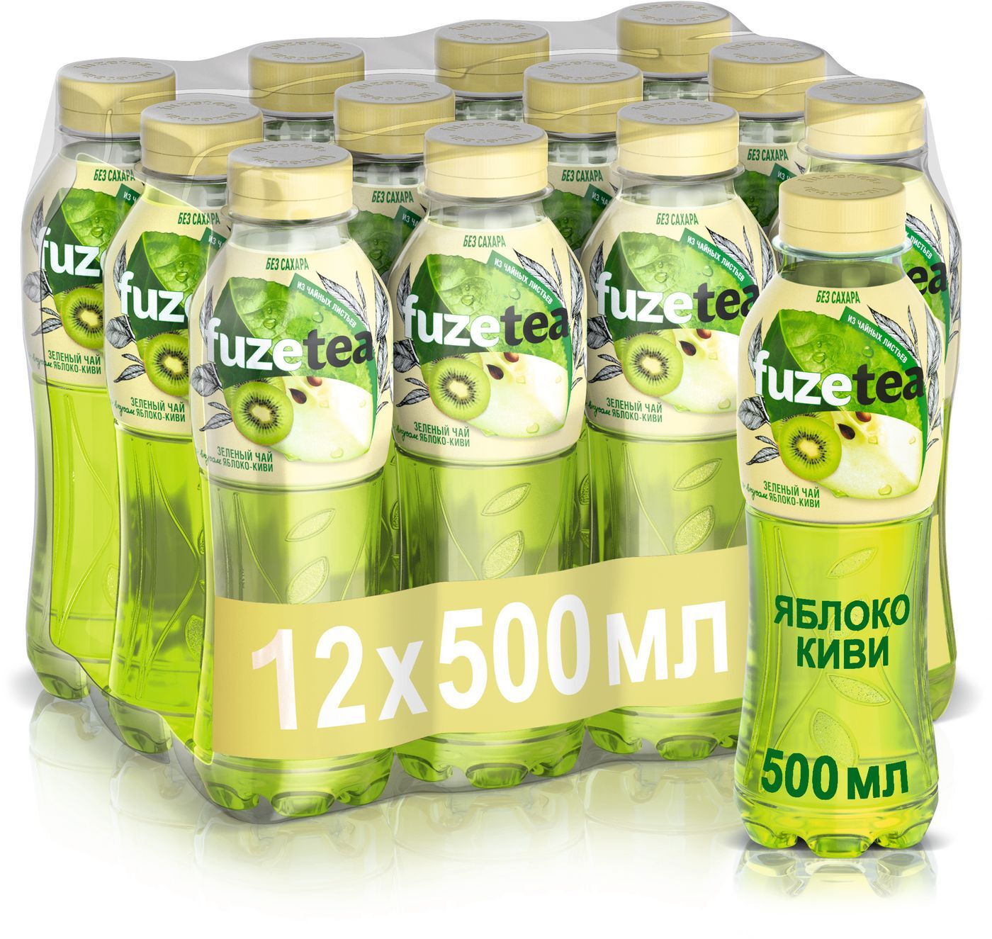 Холодный чай Fuzetea Зеро, зеленый, со вкусом яблоко-киви, 12 шт по 500 мл