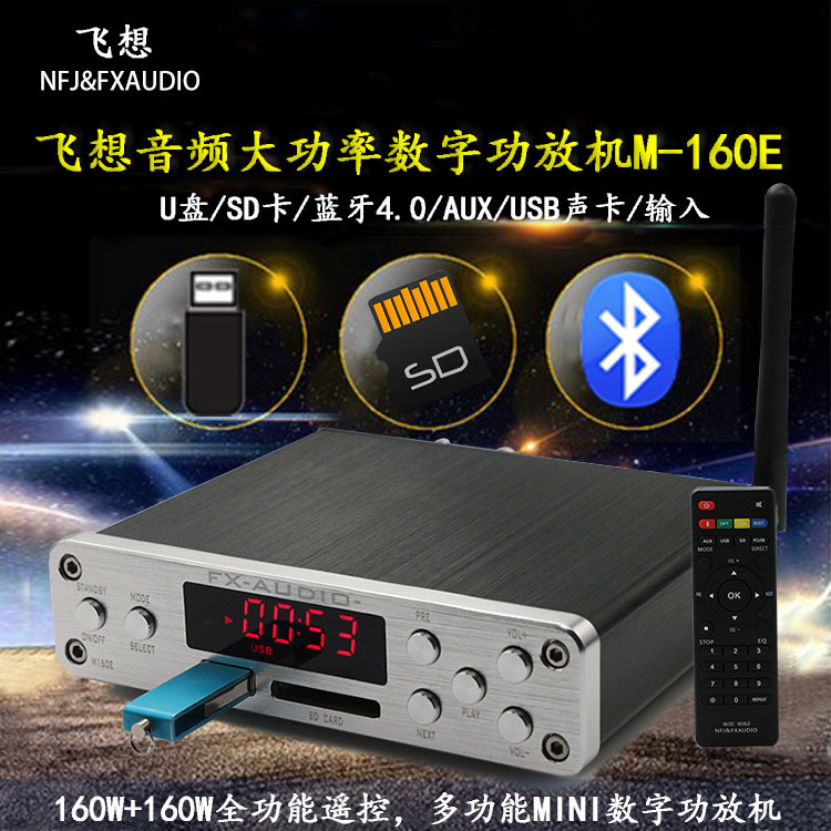 Цифровой усилитель мощности FX-Audio, Bluetooth, вход USB/SD/AUX/M-160E, без потерь, 160 Вт * 2