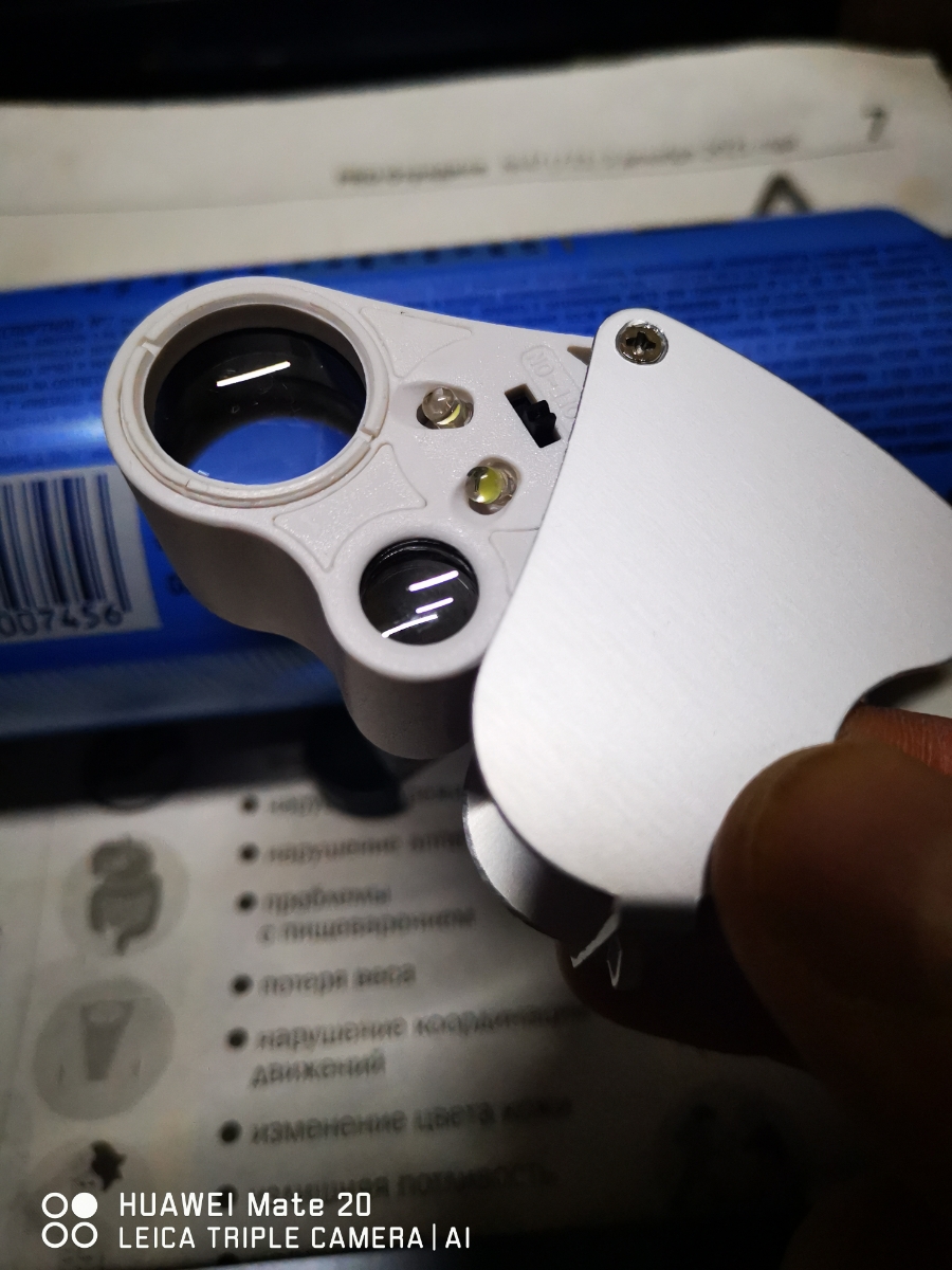 Лупа ювелирная 40х, 25 мм, с подсветкой (2 LED) MG9890