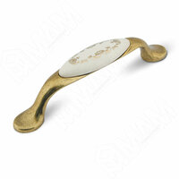 Ручка-скоба 96мм бронза состаренная/керамика золотые узоры (UP193AB/MLK)