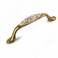Ручка-скоба 96мм бронза состаренная/керамика золотые узоры (UP19-11AB/MLK)