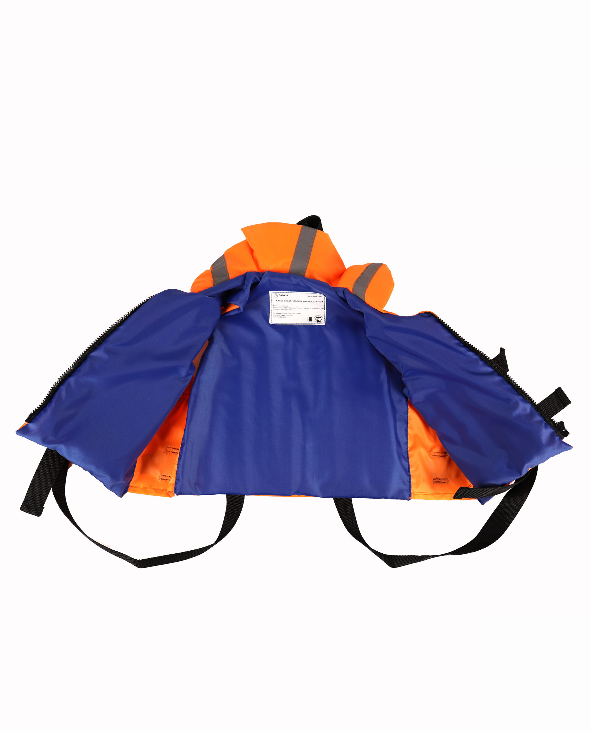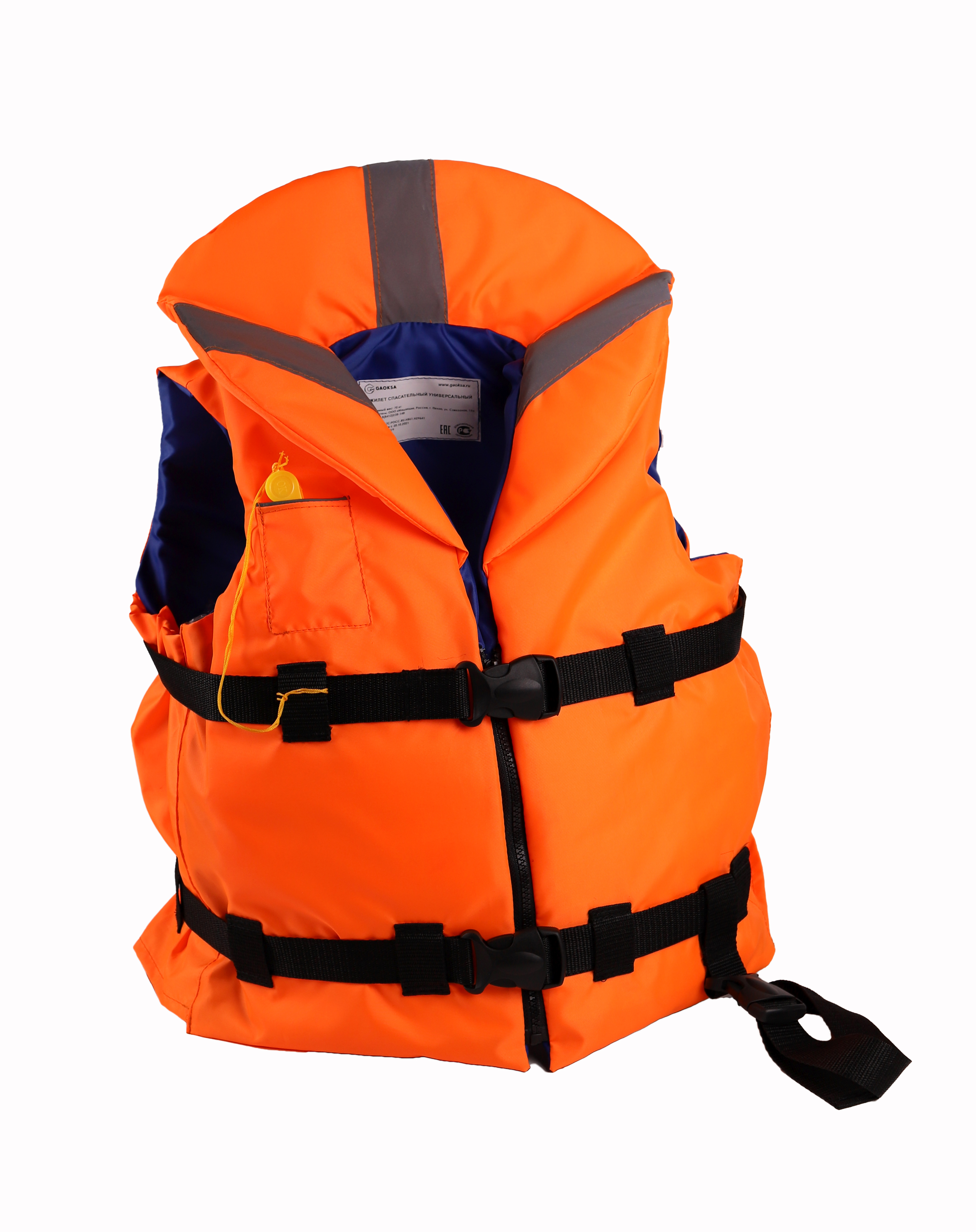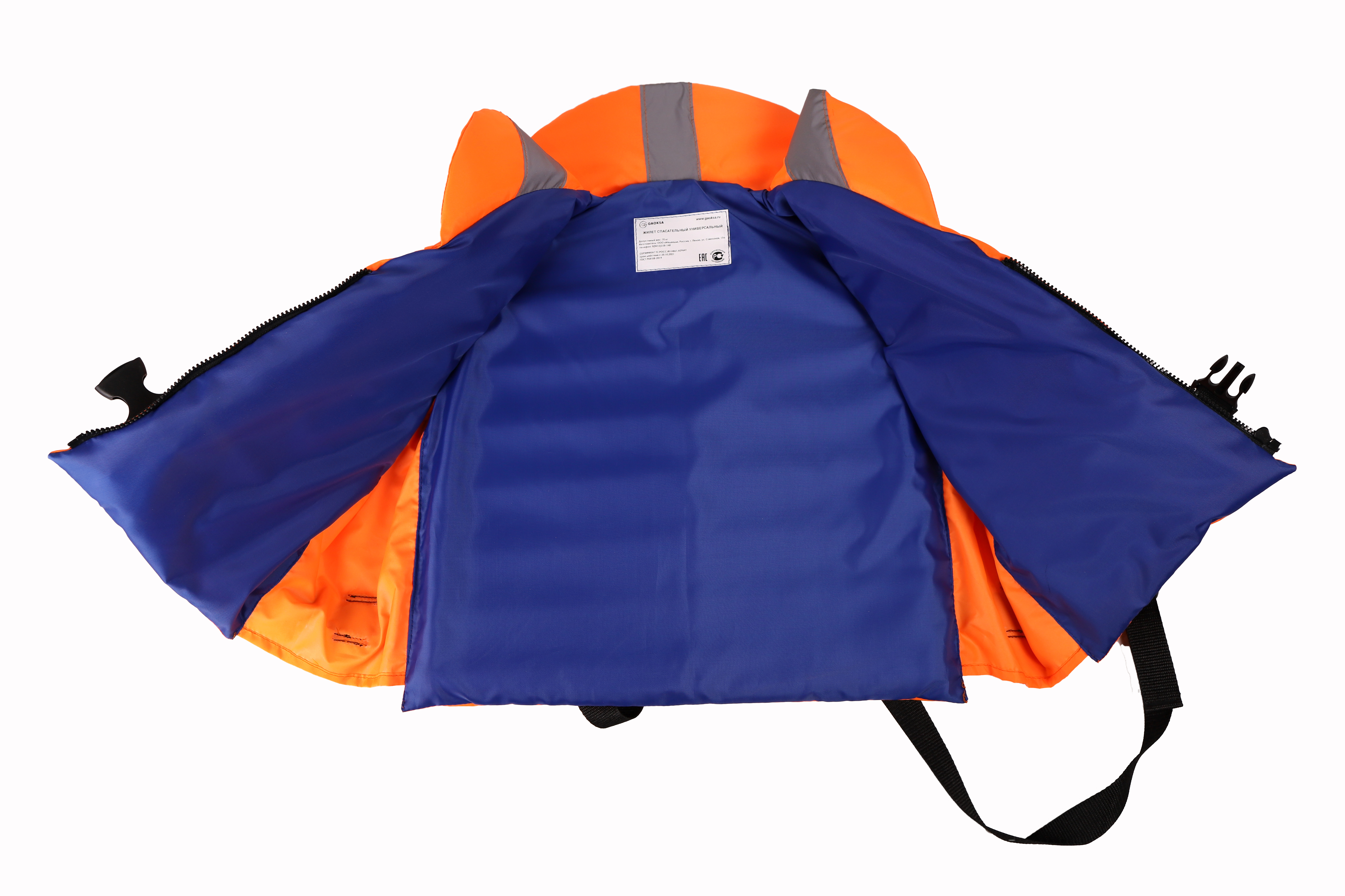 Жилет спасательный с подголовником, светоотражающими элементами для лодки до 70 кг.