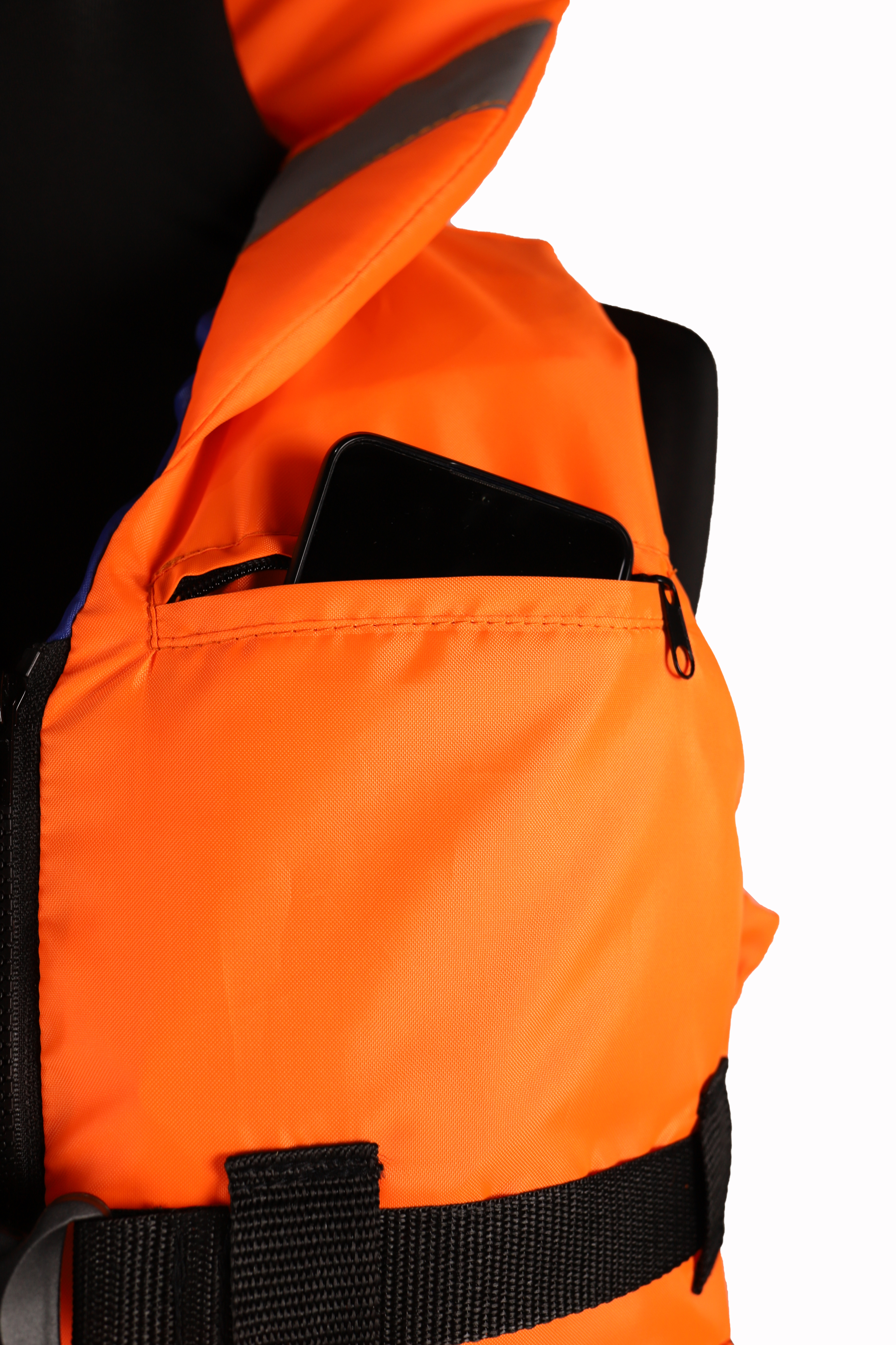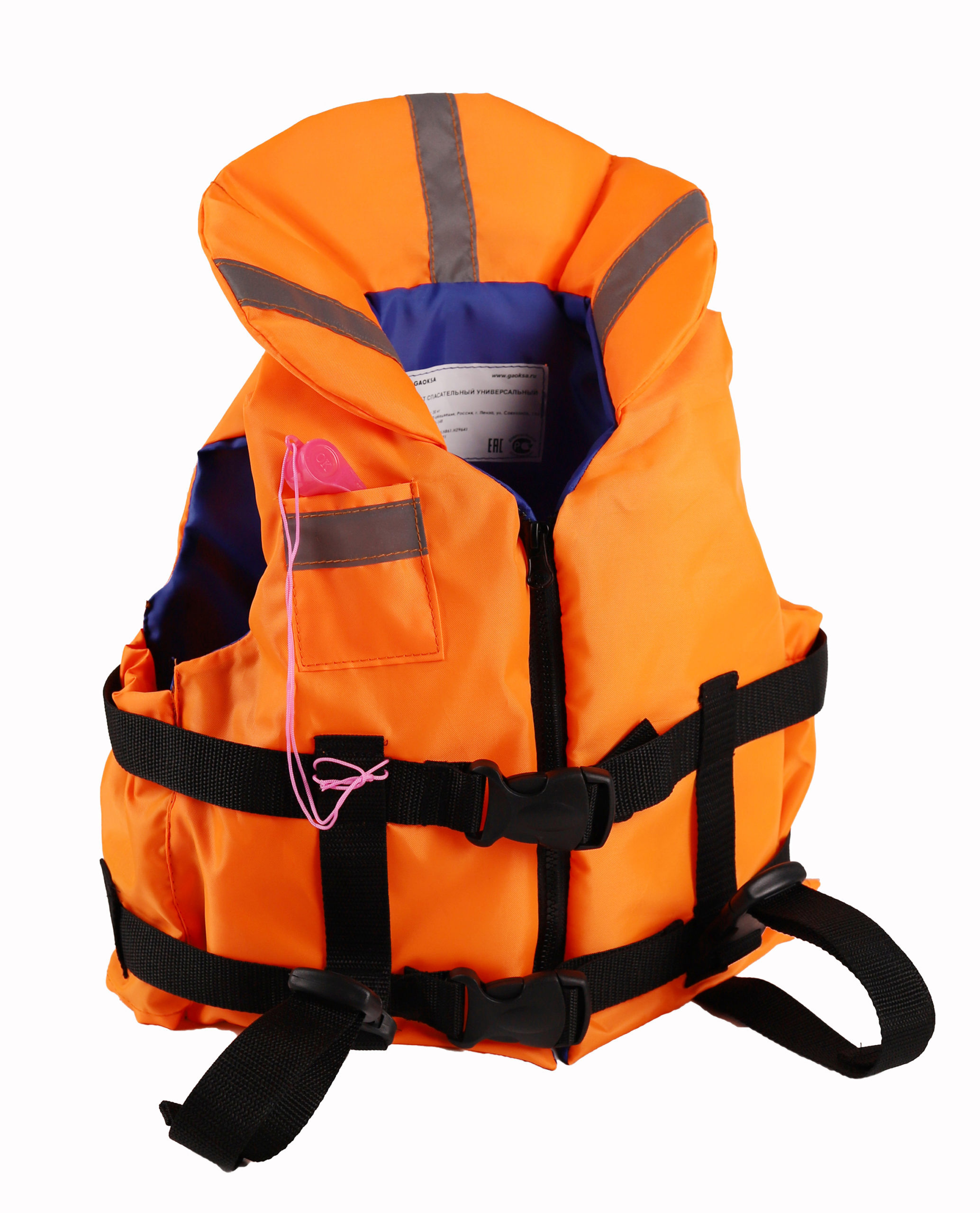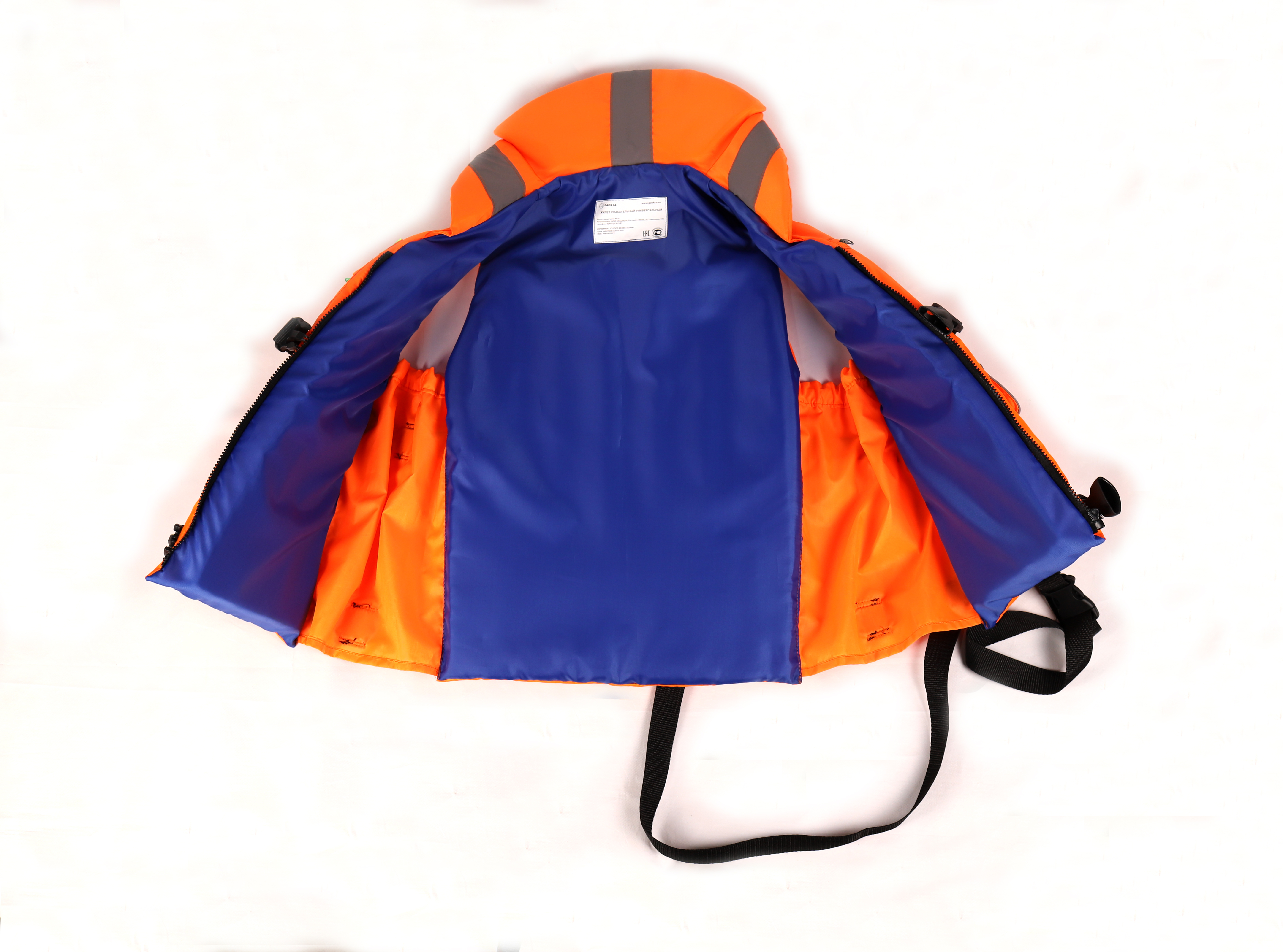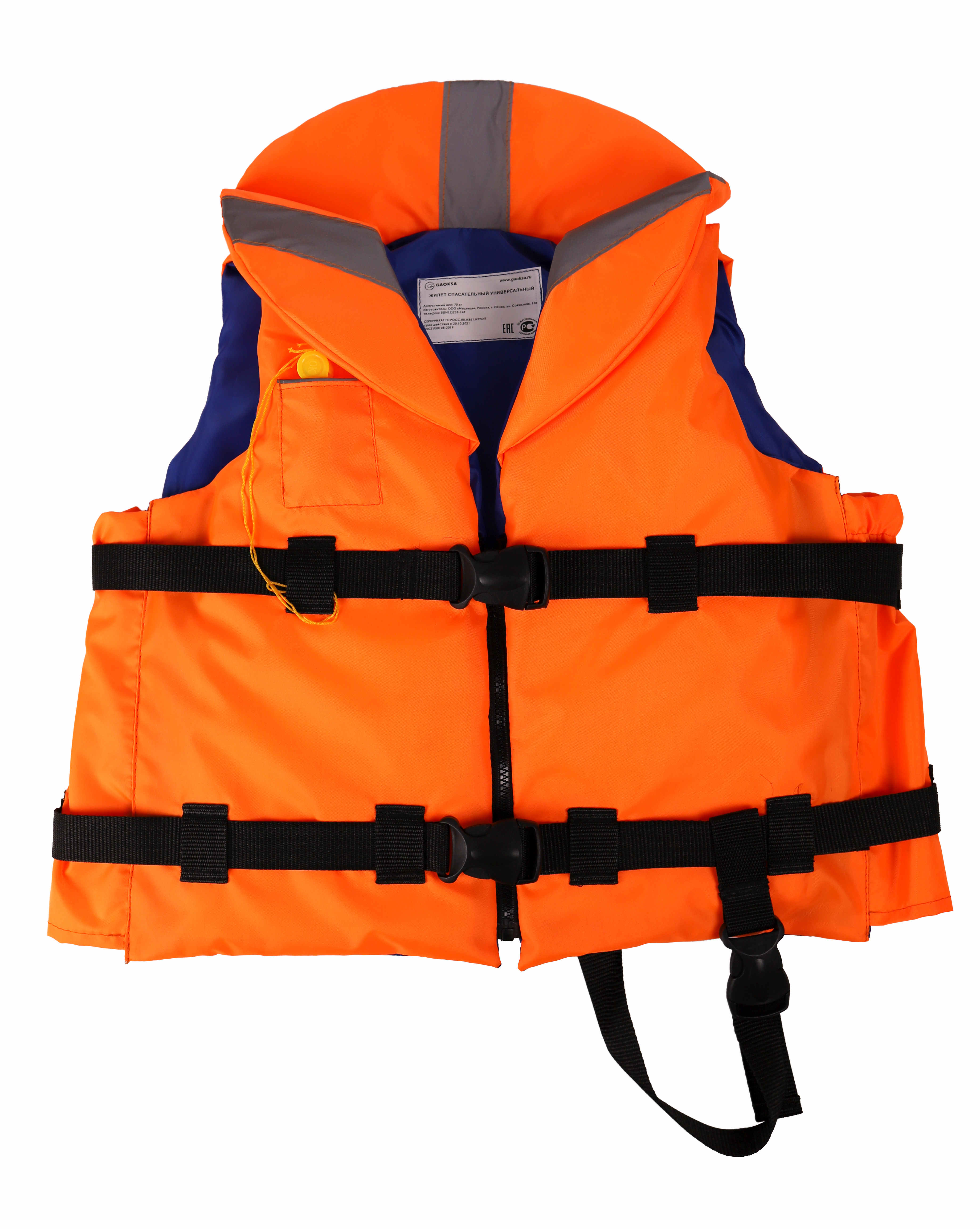 Жилет спасательный с подголовником, светоотражающими элементами для лодки до 70 кг.