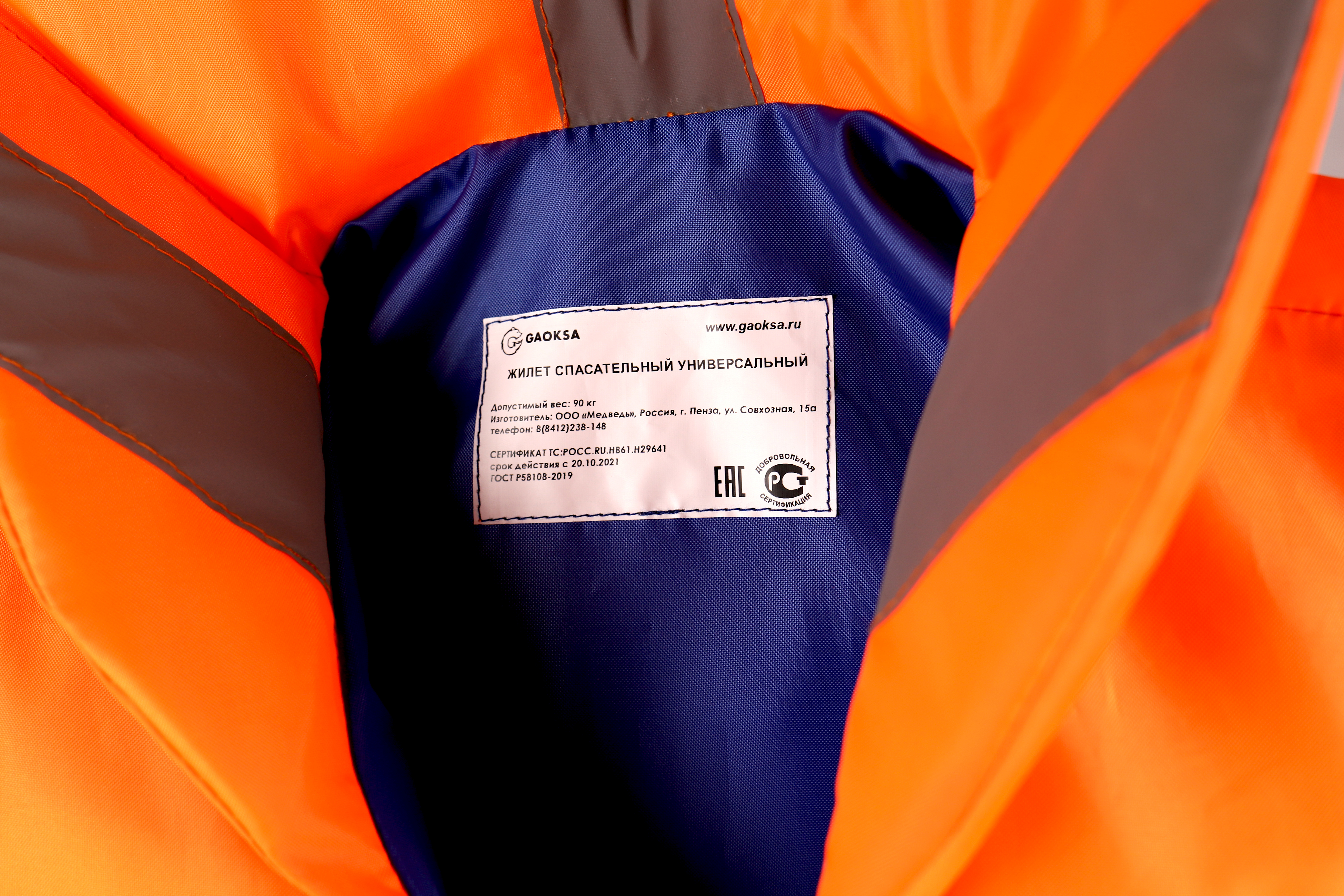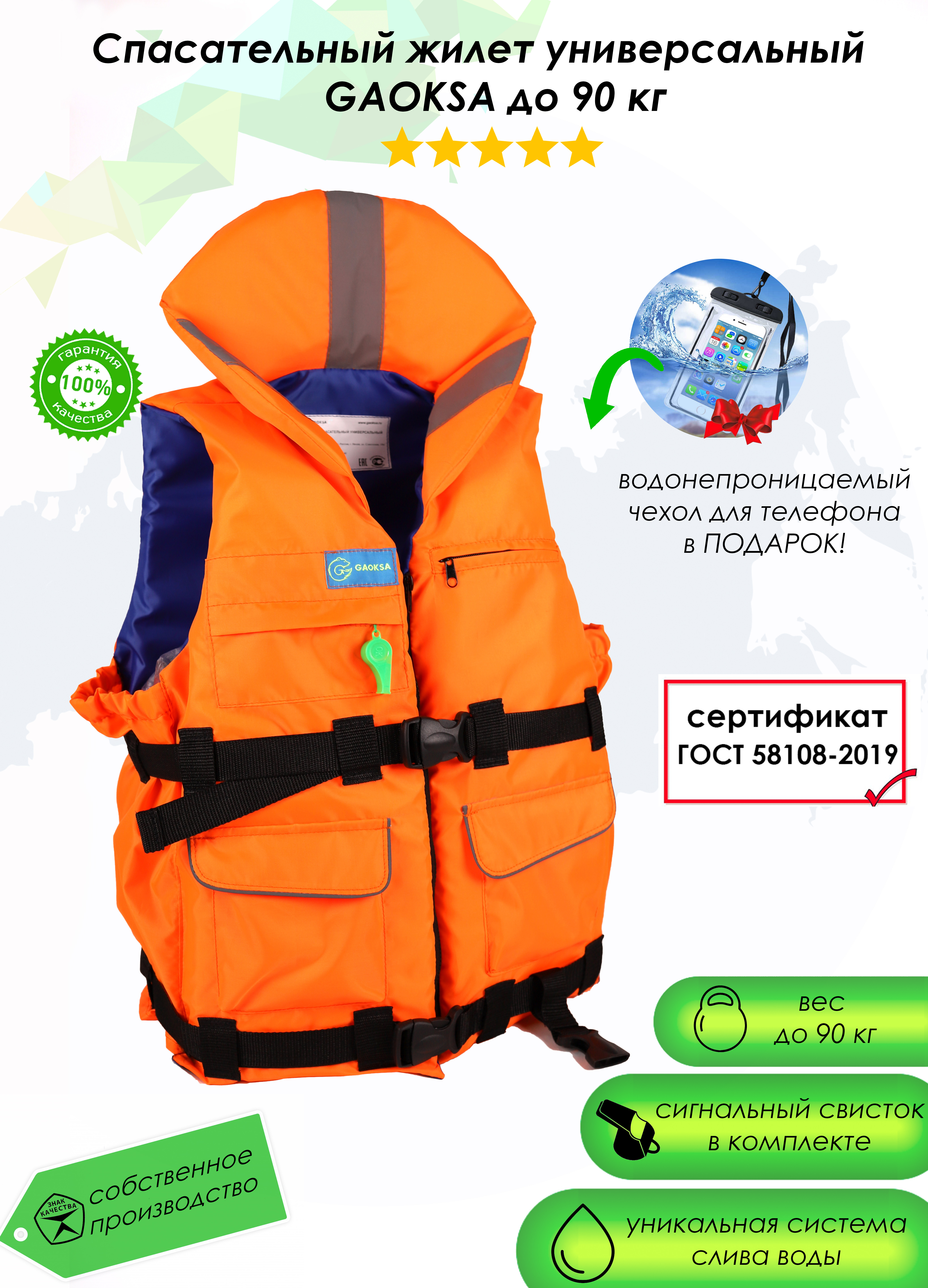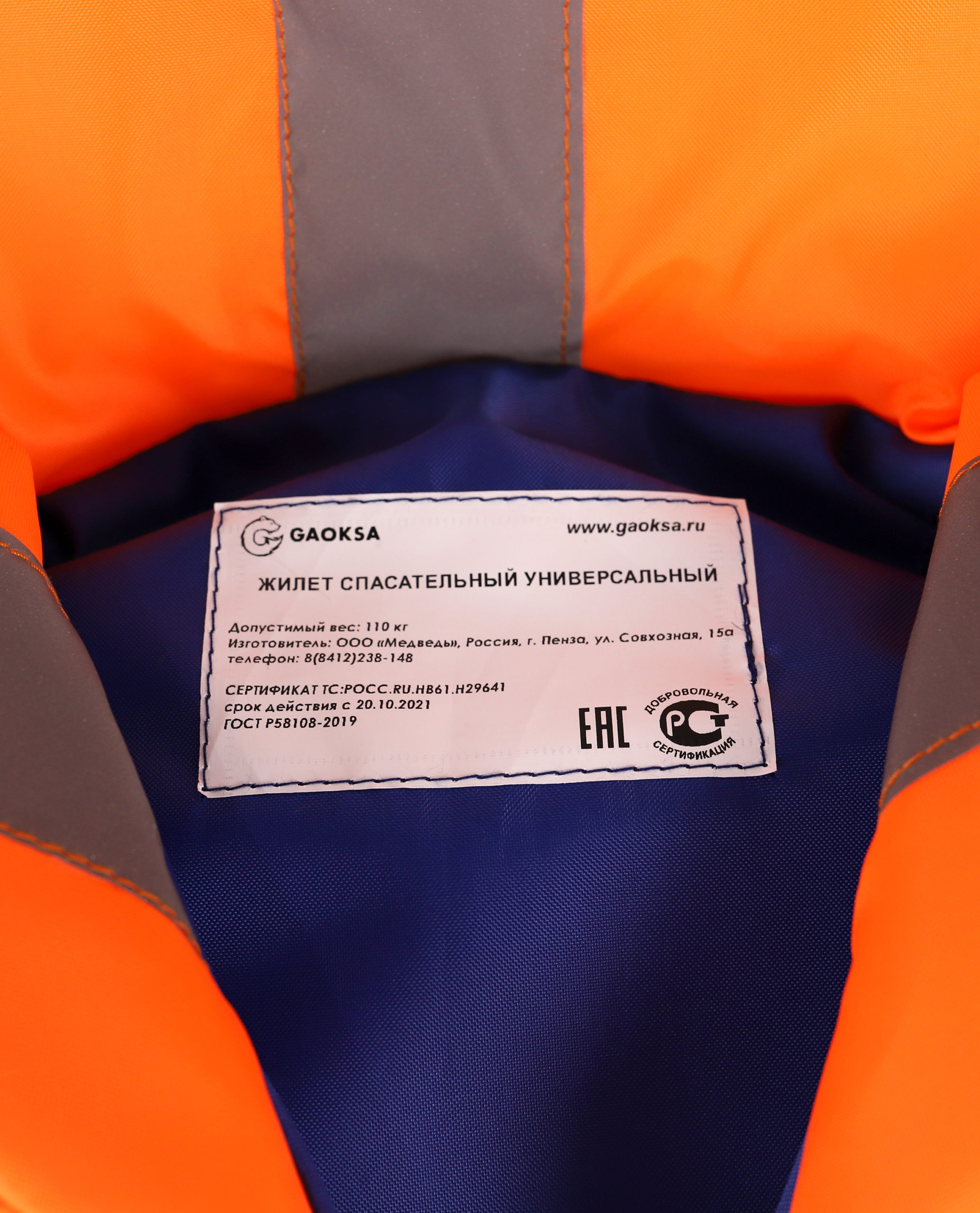 Спасательный жилет GAOKSA, до 90 кг с подголовником и светоотражающими элементами