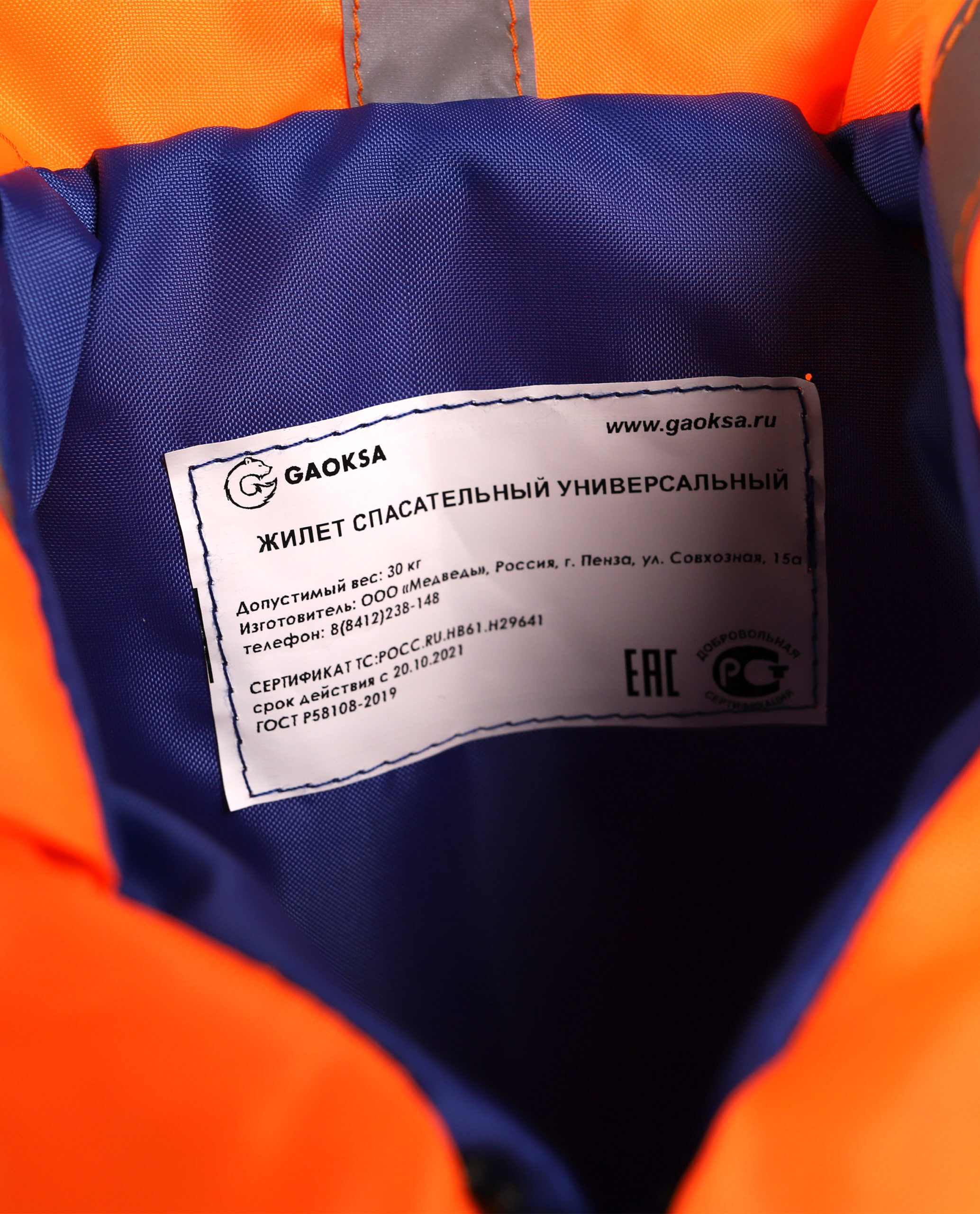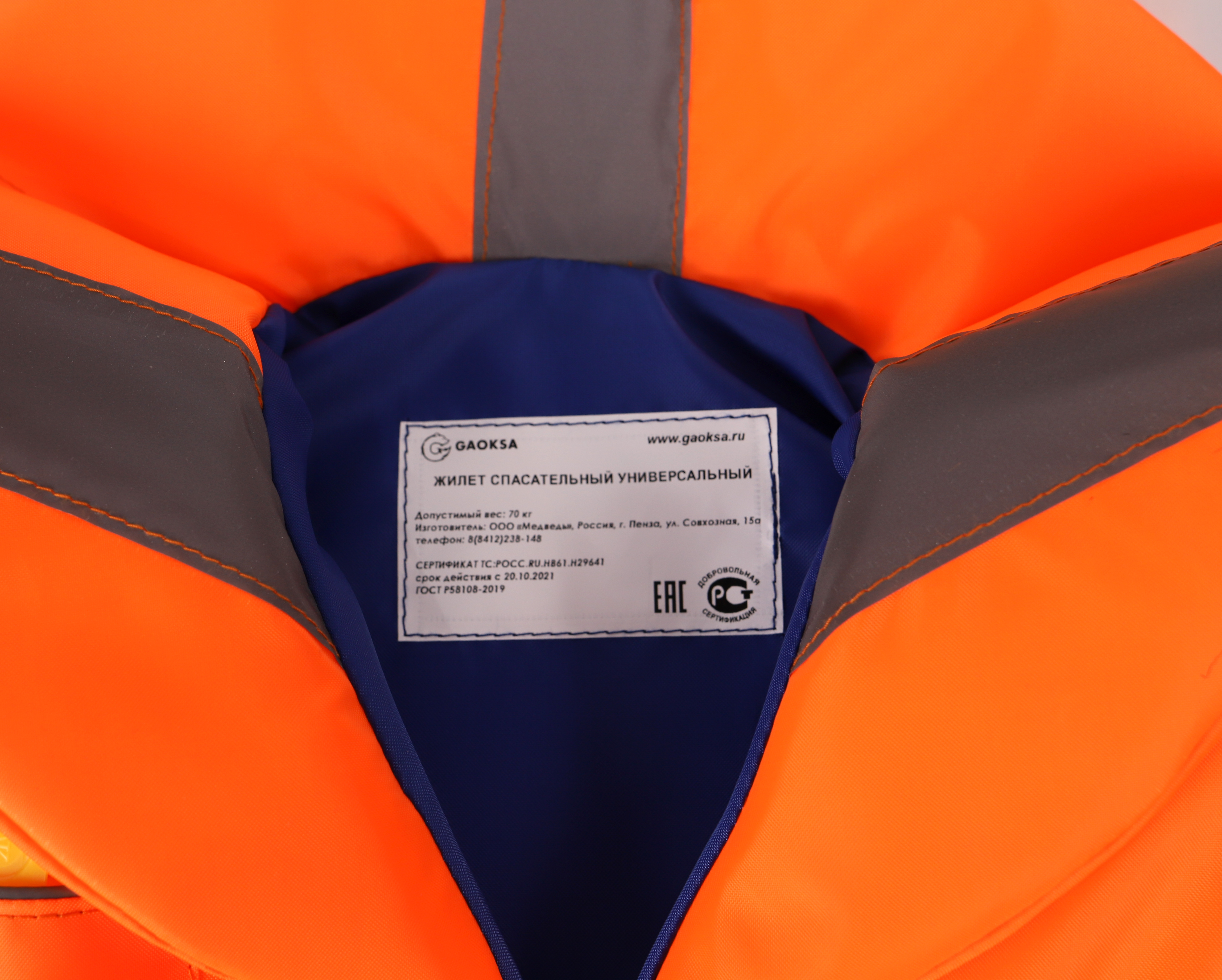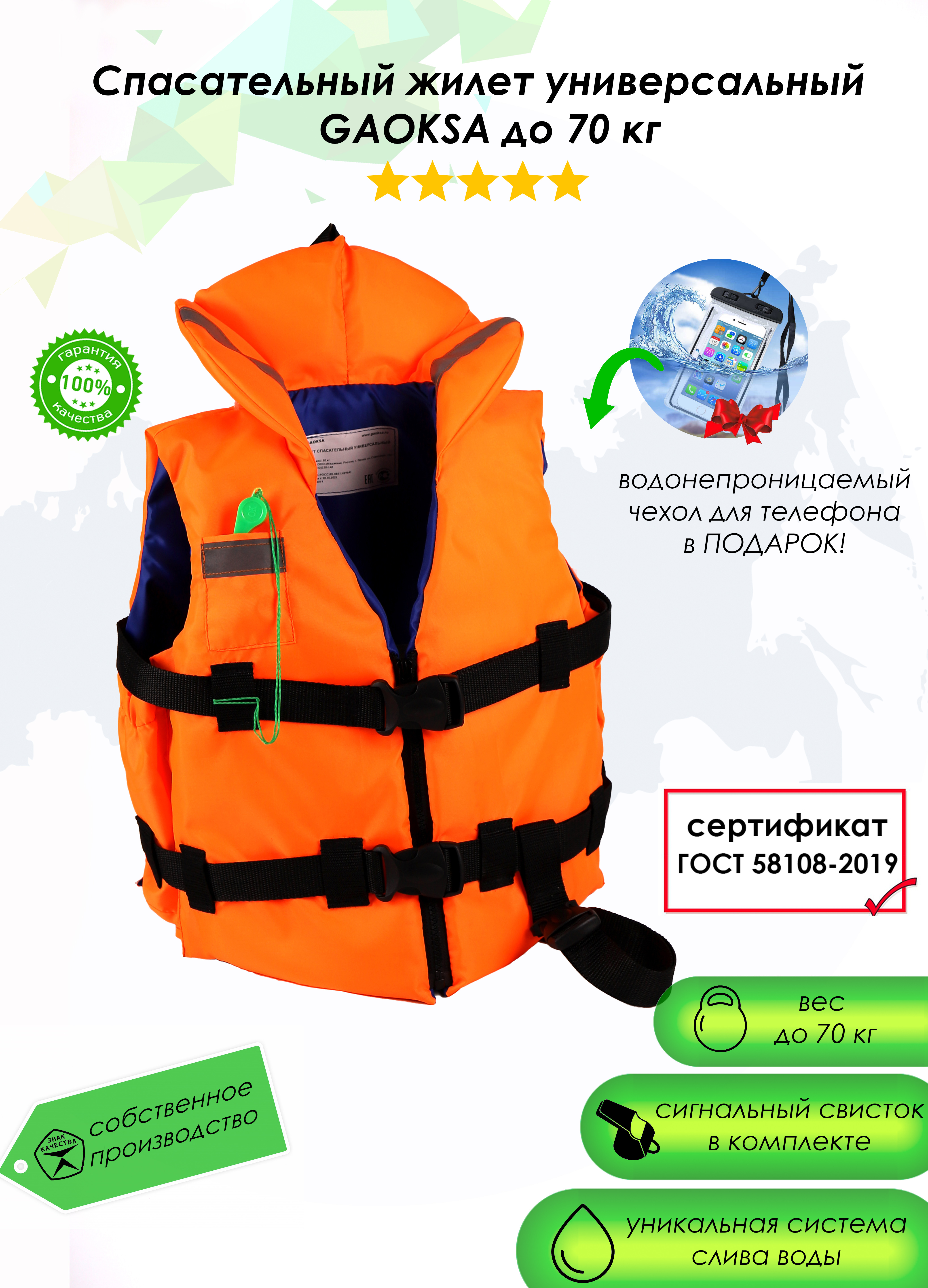 Спасательный жилет GAOKSA, до 70 кг с подголовником и светоотражающими элементами