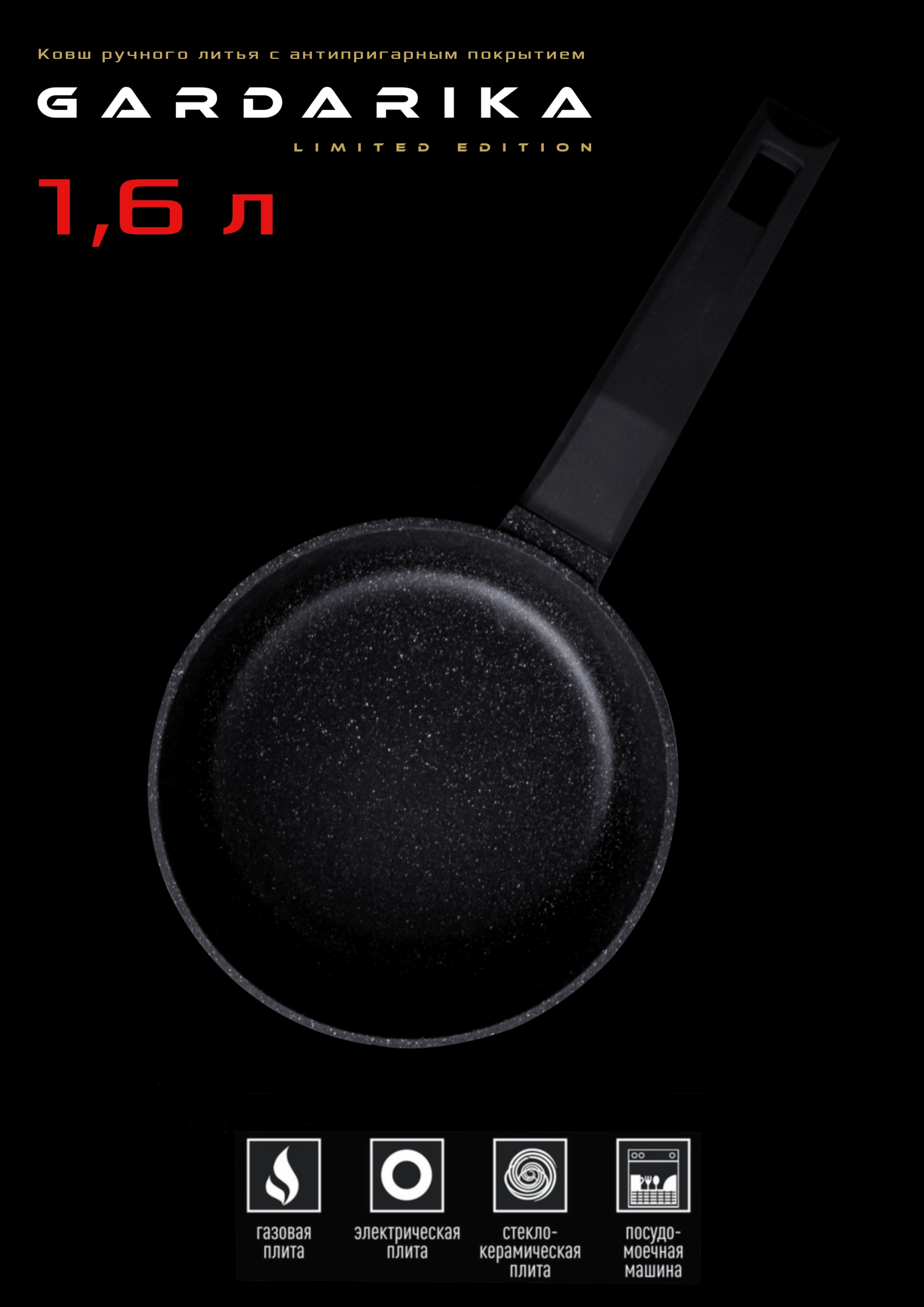 Кухонный ковш Гардарика, покрытие Алюминиевое, Устойчивое к царапинам, 18 см, 1,6 л