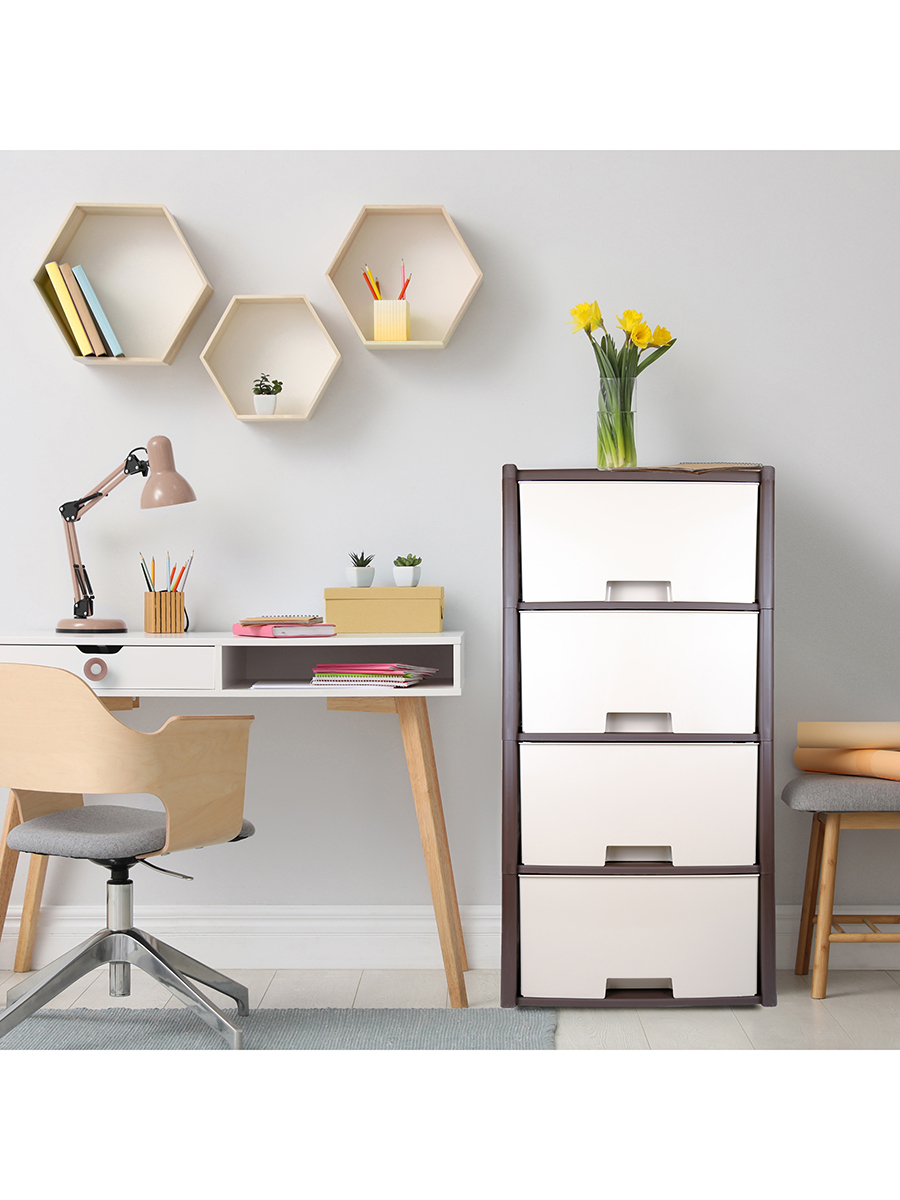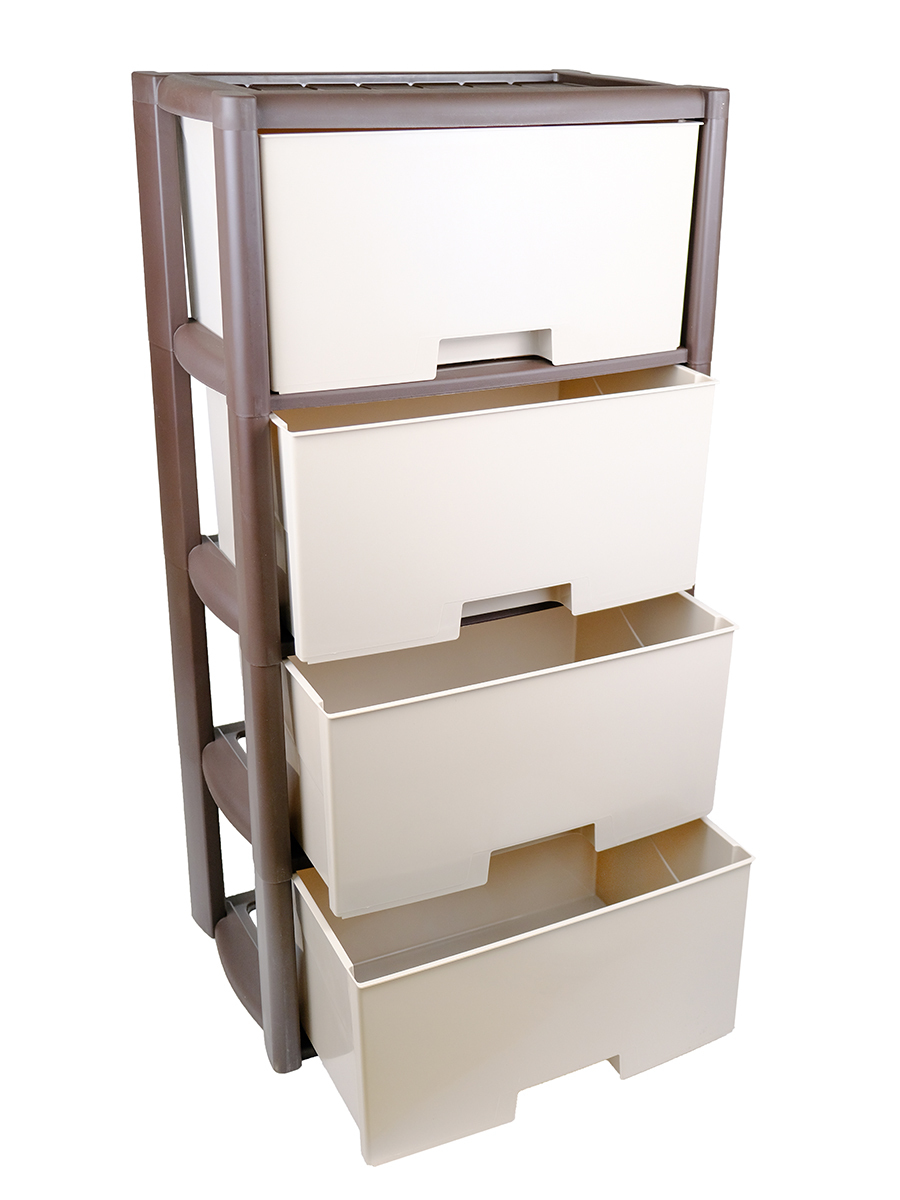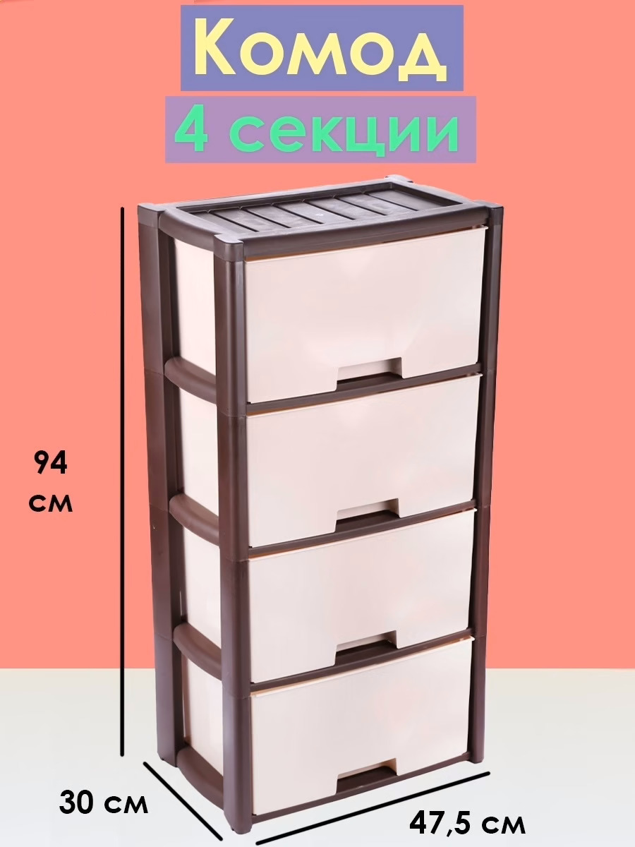 Комод пластиковый с ящиками 4 секции для дома в ванную, прихожую и для игрушек "Колорит" венге