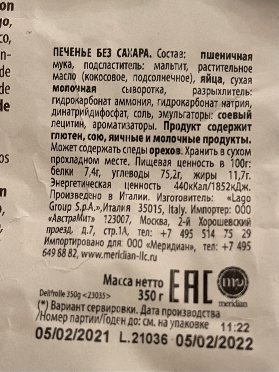 Печенье Gastone lago Frollini цельнозерновое 350 гр