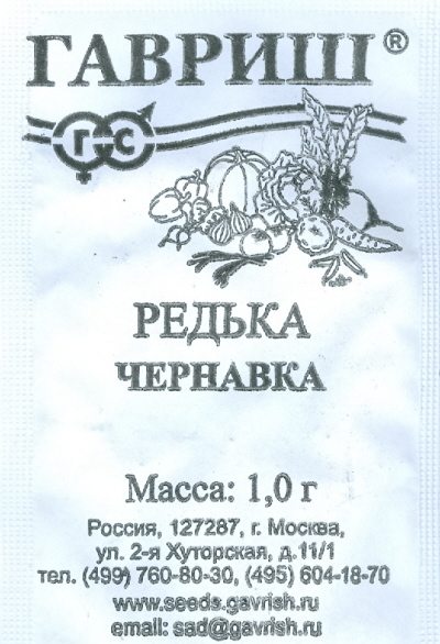 Семена. Редька "Чернавка" (вес: 1,0 г)