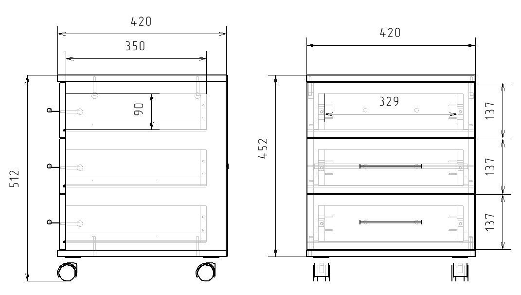 Тумба офисная, Тумба прикроватная ГайваМебель Выкатная, 3 ящ., 42х42х52 см