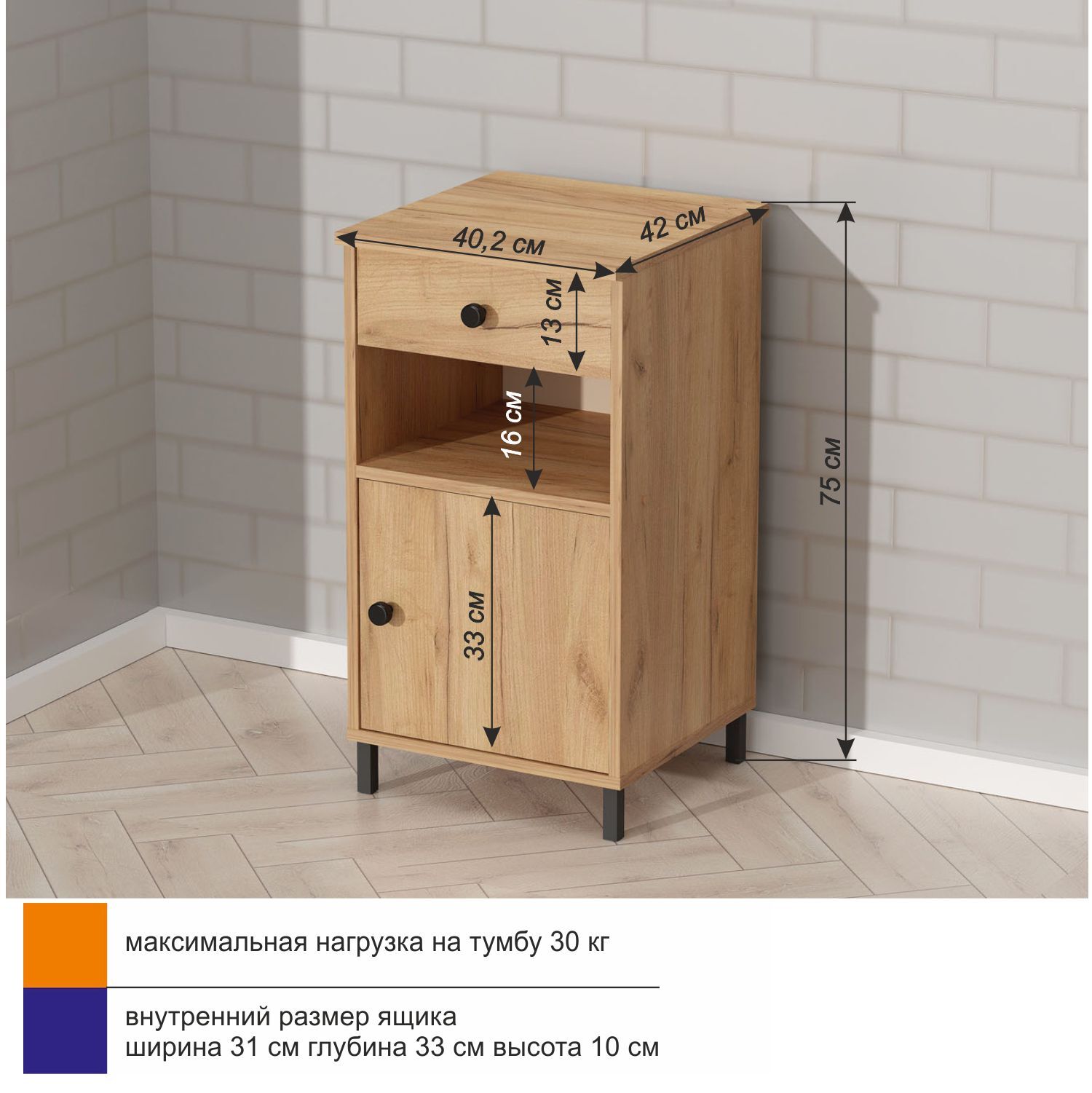 Тумба прикроватная ГайваМебель "Лира-2", 48х43х50.3 см