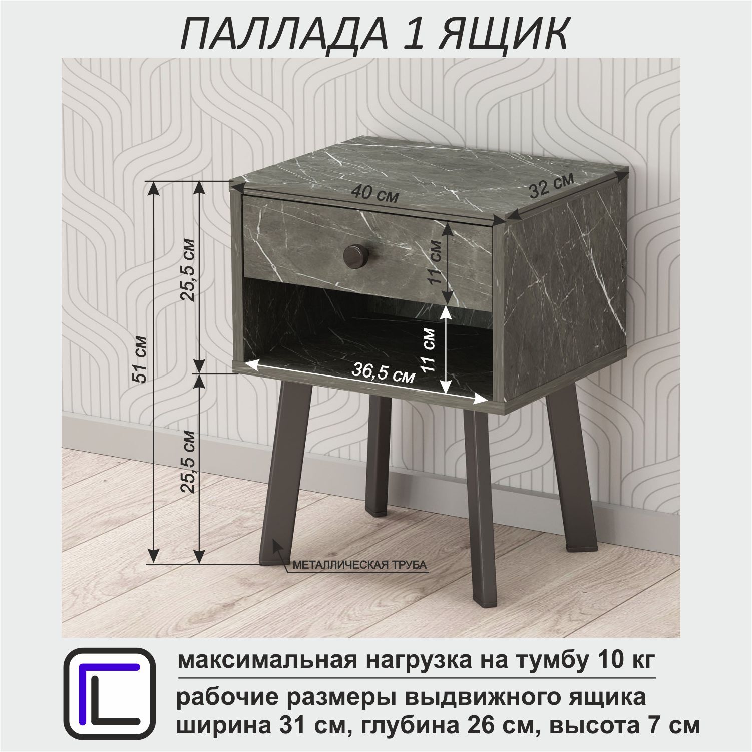 Тумба прикроватная ГайваМебель ПАЛЛАДА С НИШЕЙ, 1 ящ., 40х32х51 см