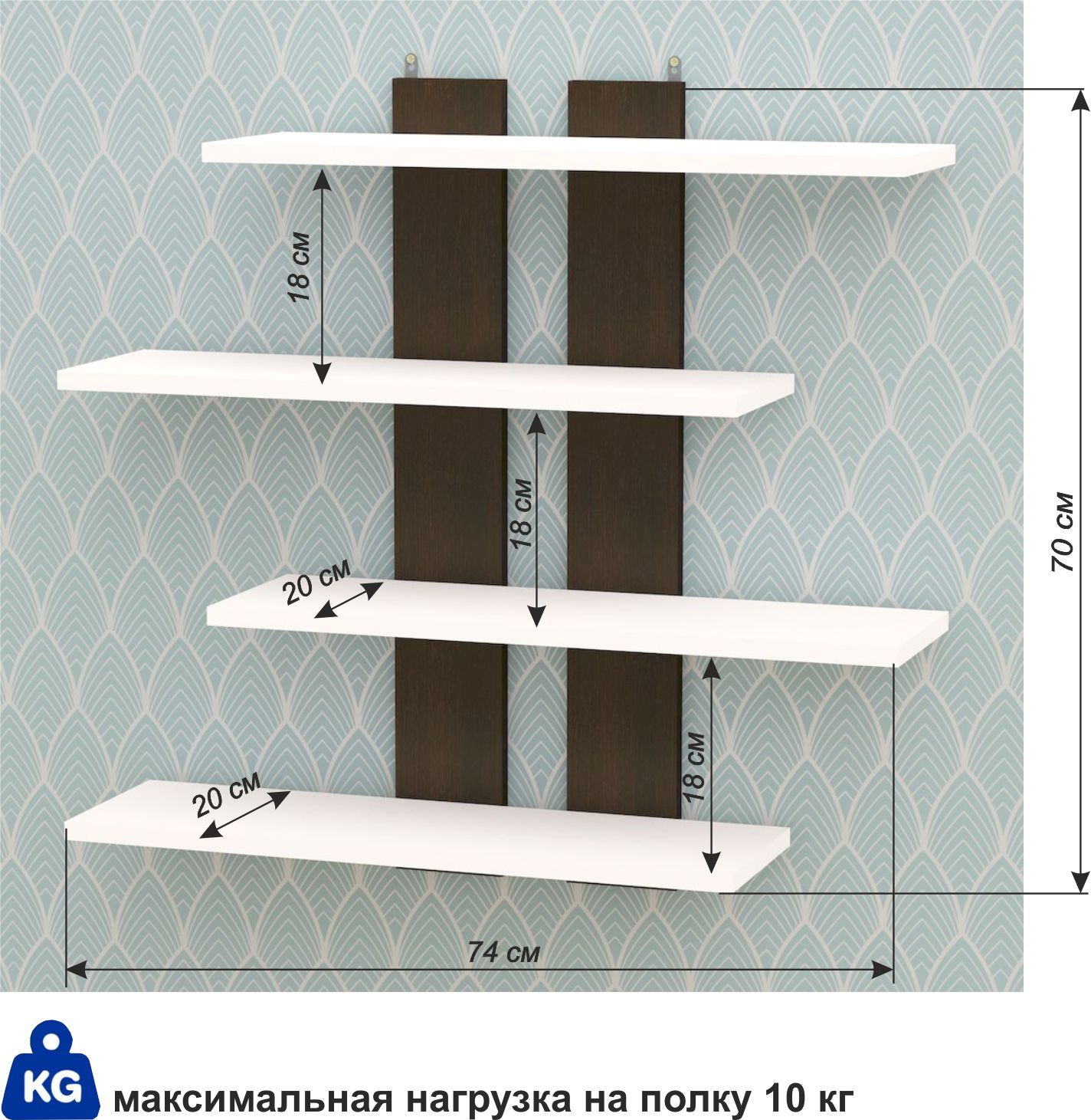 Полка ГайваМебель Настенная Прямая Д34, 74х20х70 см, 1 шт.