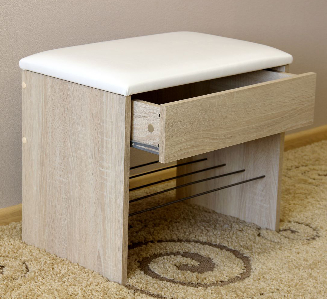 Банкетка с ящиком (дуб сонома / кож зам белый), Экокожа, 55х35х47 см