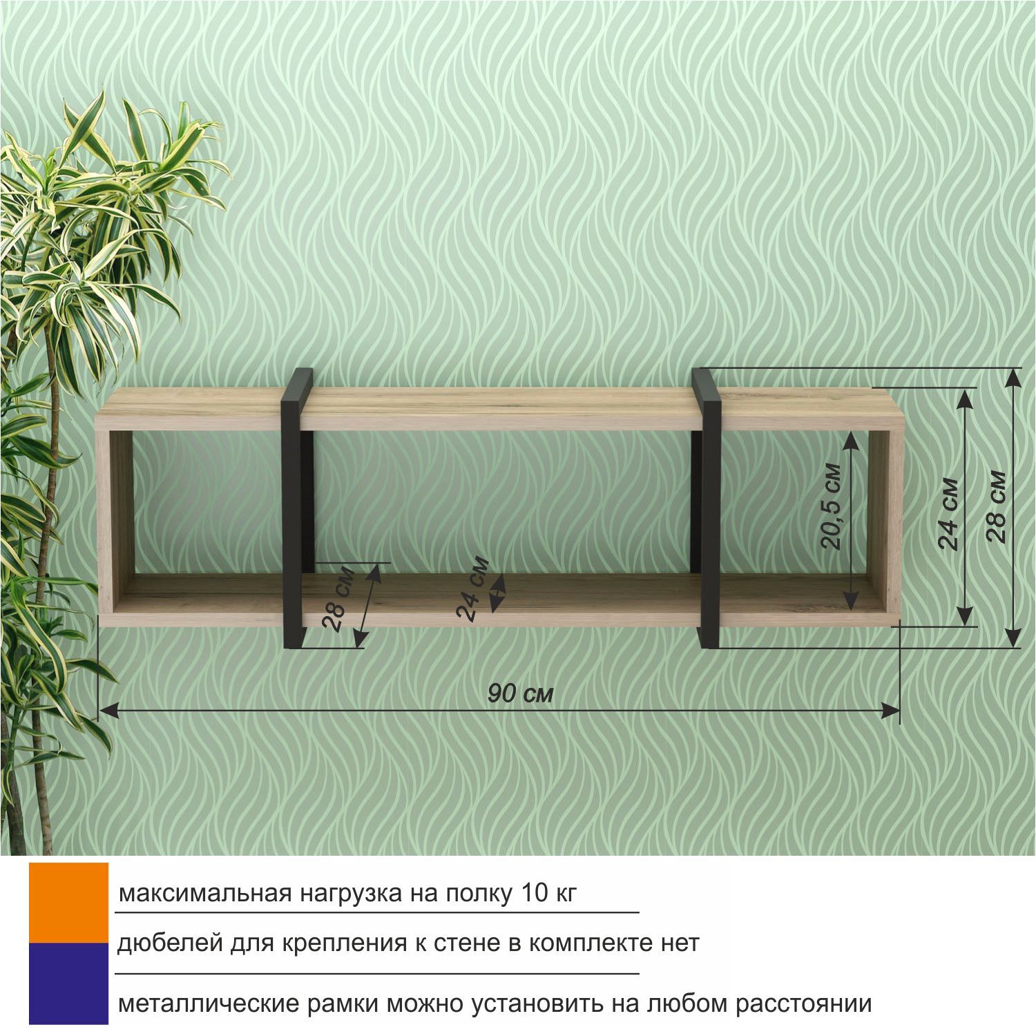 Полка ГайваМебель Настенная Прямая металлическая ЛОФТ-9, 90х28х28 см, 1 шт.
