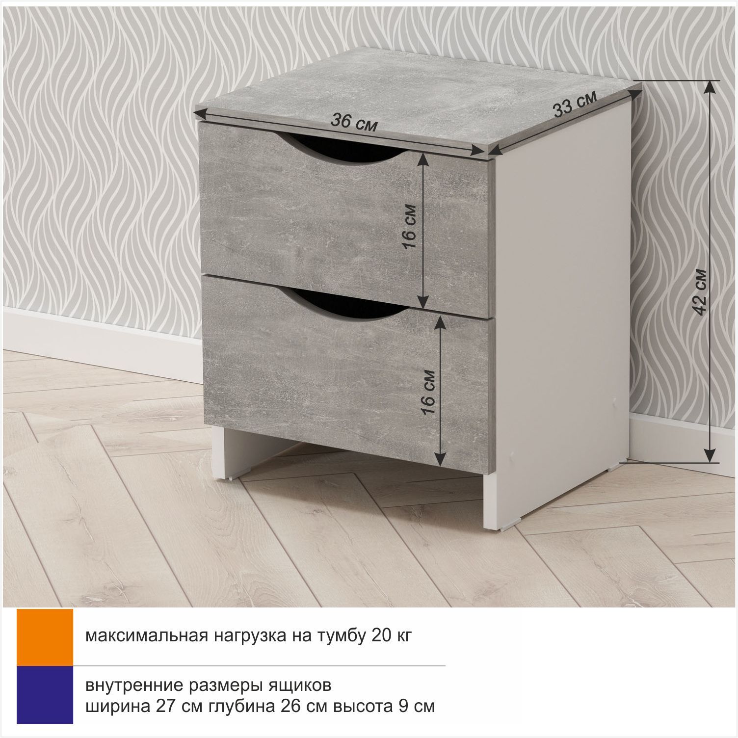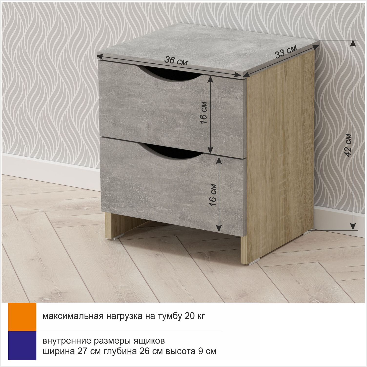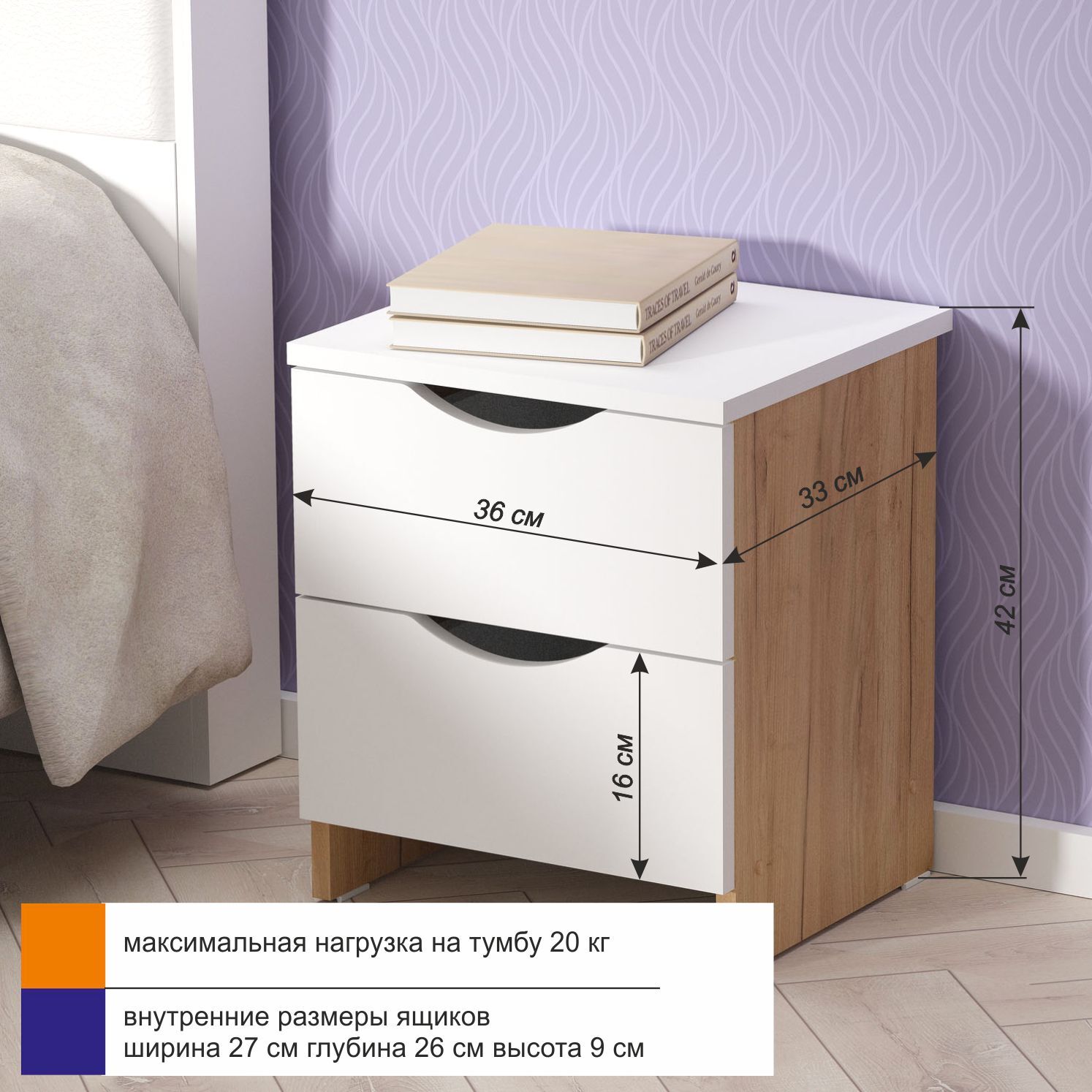 Тумба прикроватная ГайваМебель Компакт 2 ящика, 2 ящ., 36х33х42 см