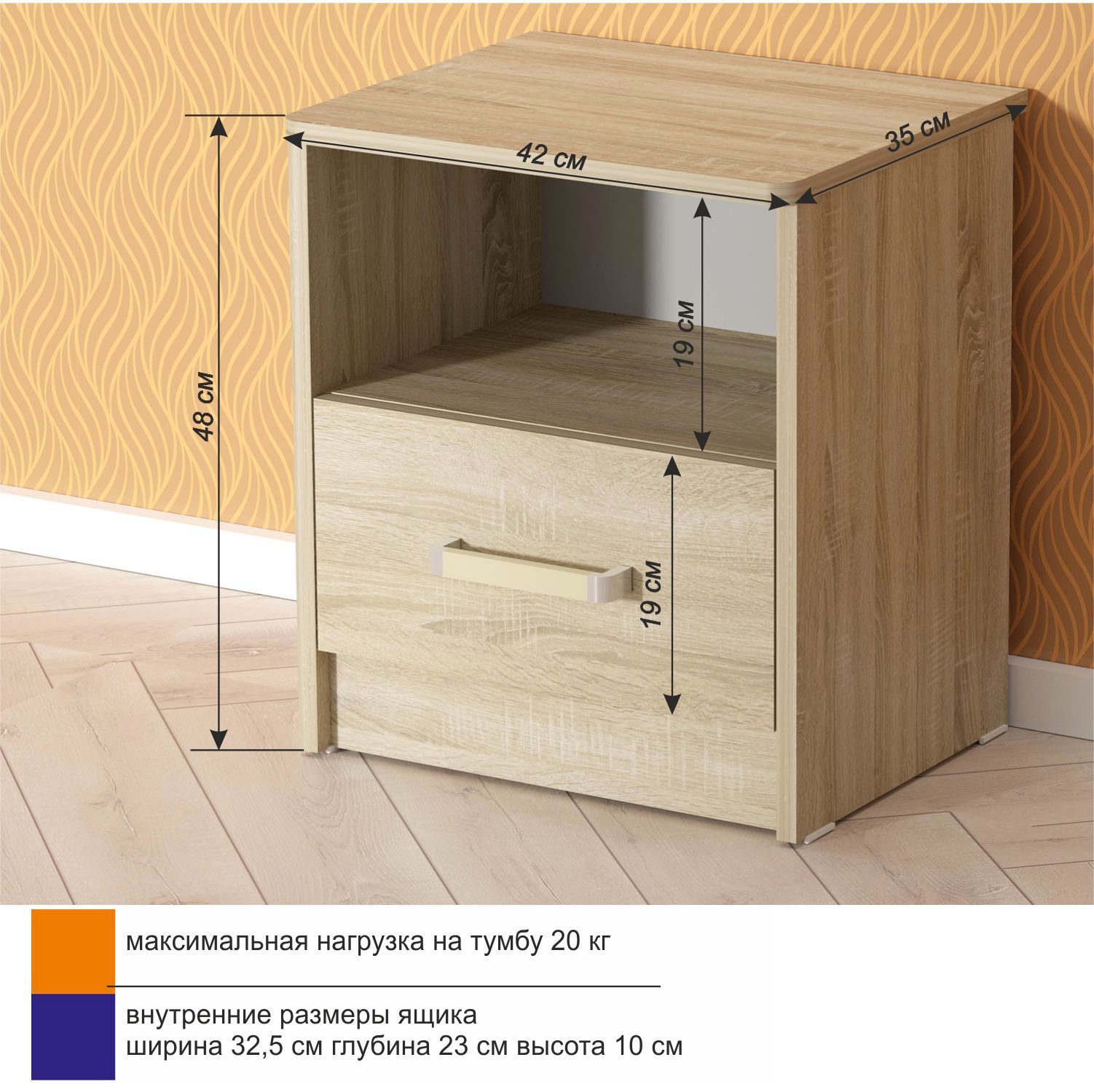 Тумба прикроватная ГайваМебель ЭКСОН с ящиком, 1 ящ., 42х35х48 см