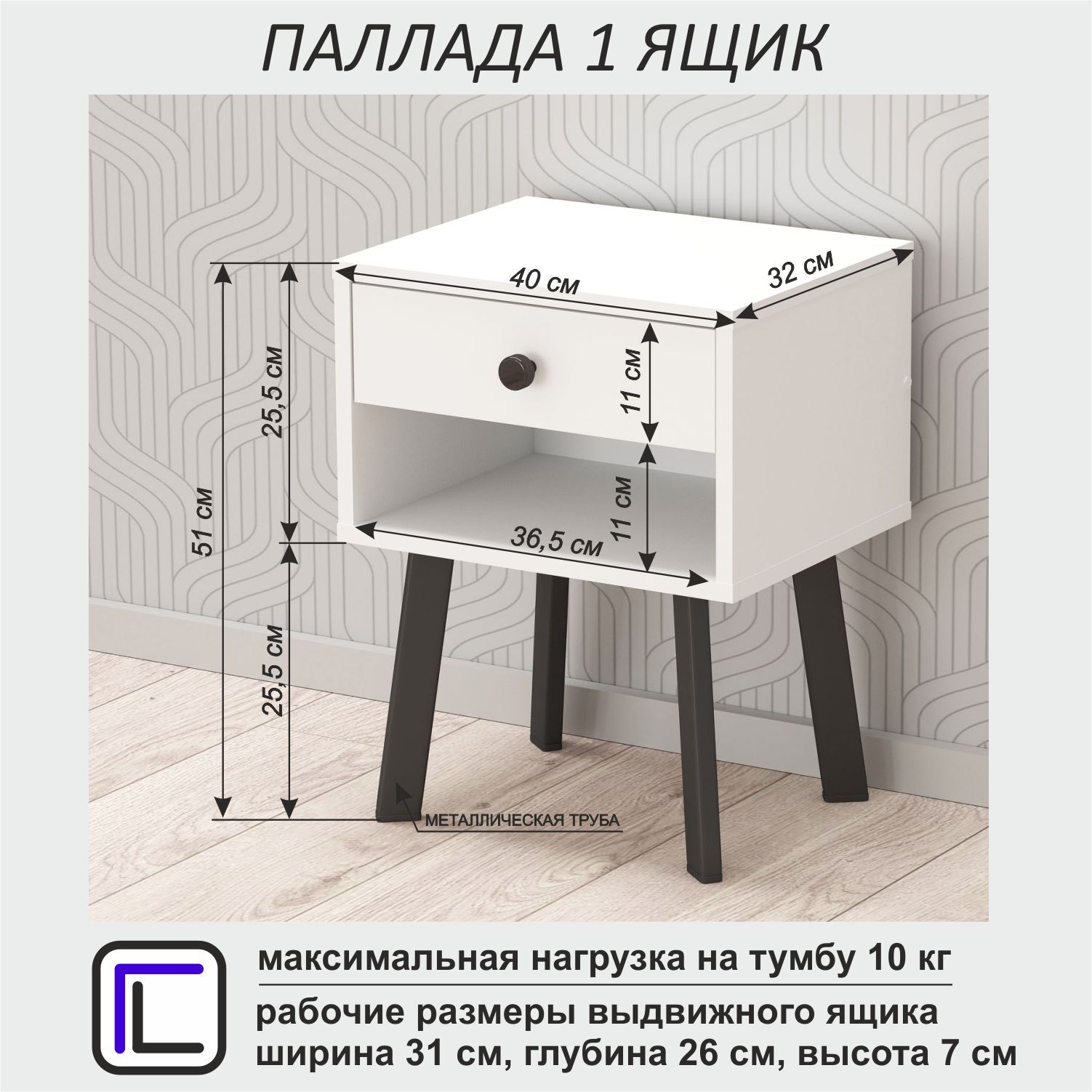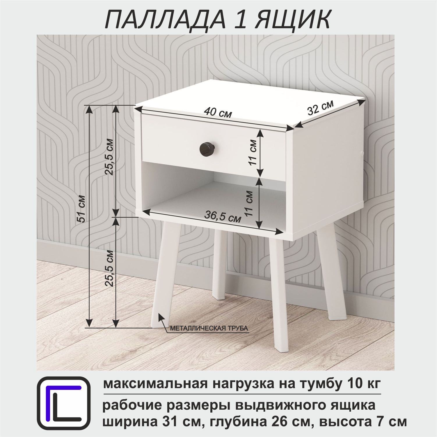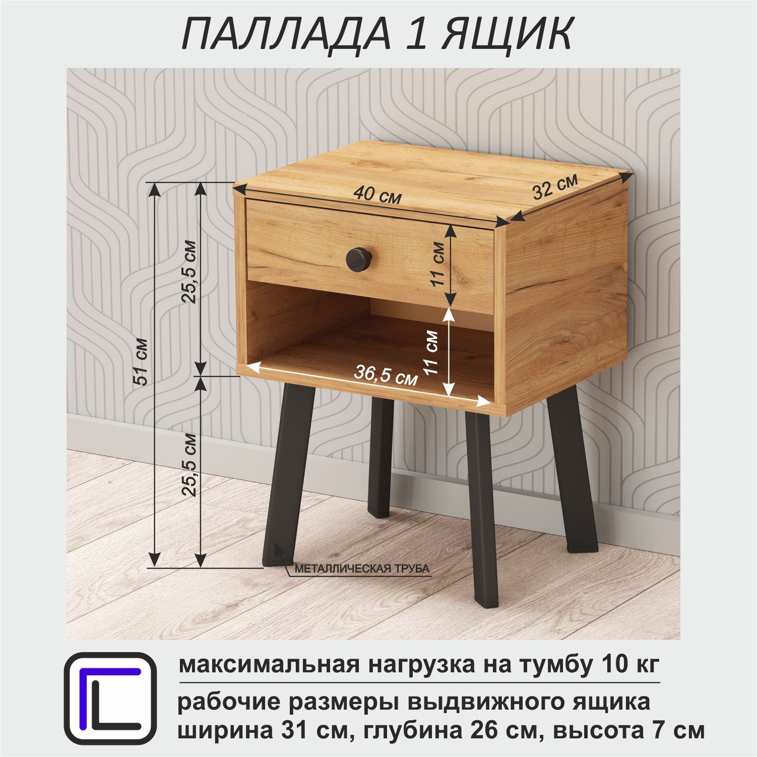 Тумба прикроватная ГайваМебель ПАЛЛАДА С НИШЕЙ, 1 ящ., 40х32х51 см