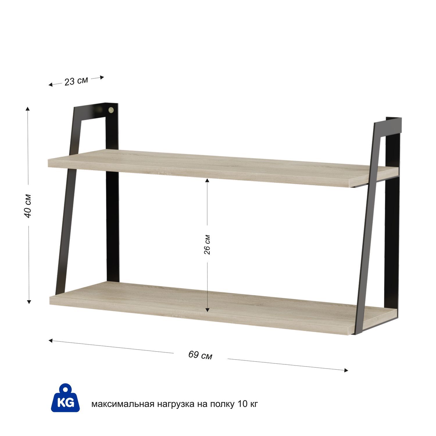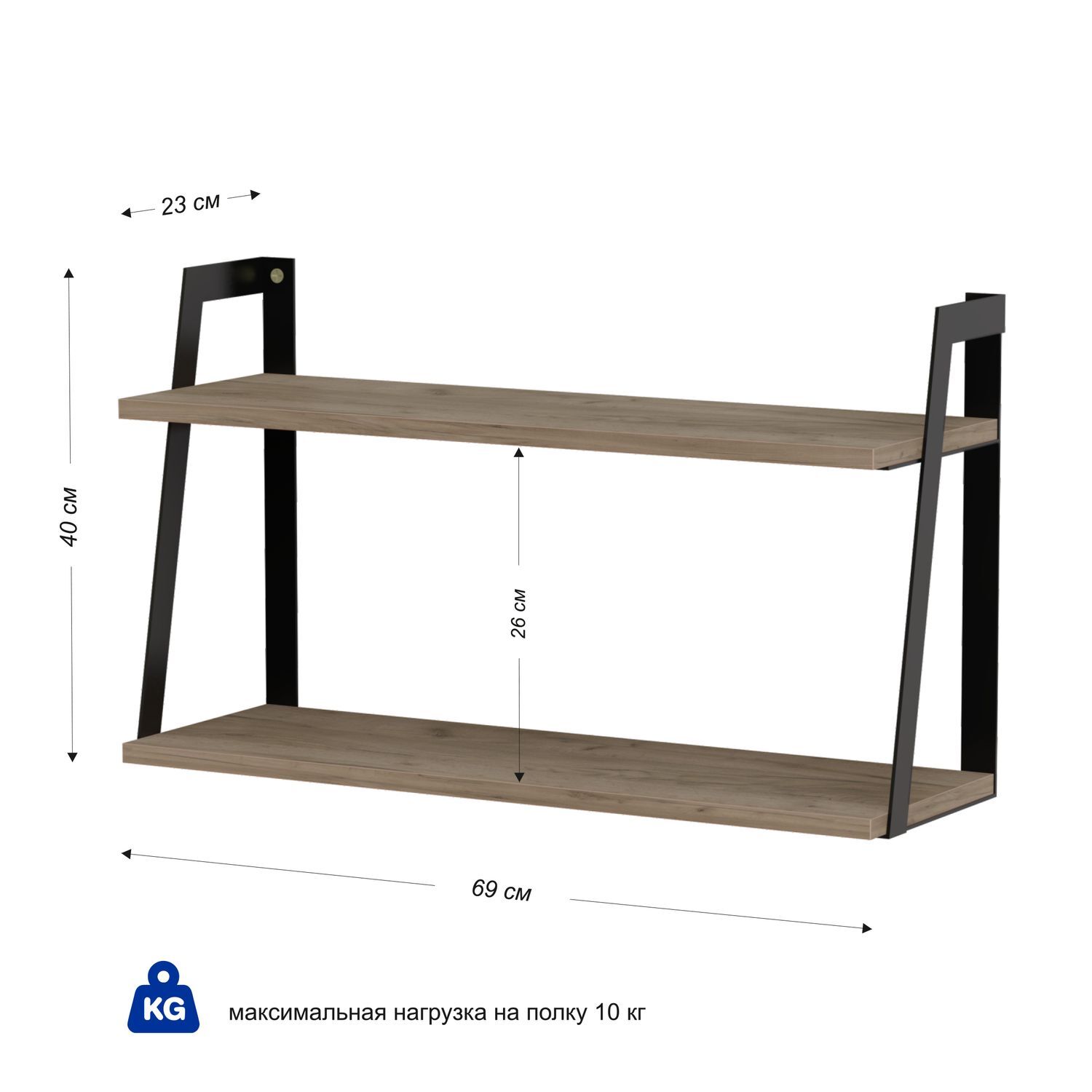 Полка ГайваМебель Настенная Прямая ЛОФТ-2, 69х23х40 см, 1 шт.