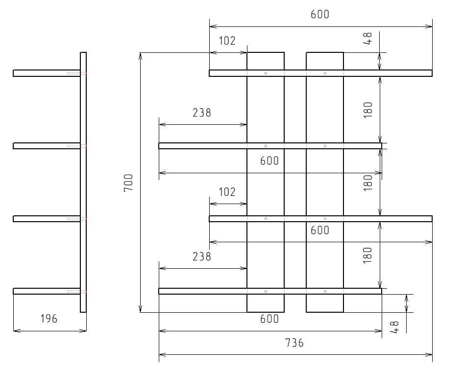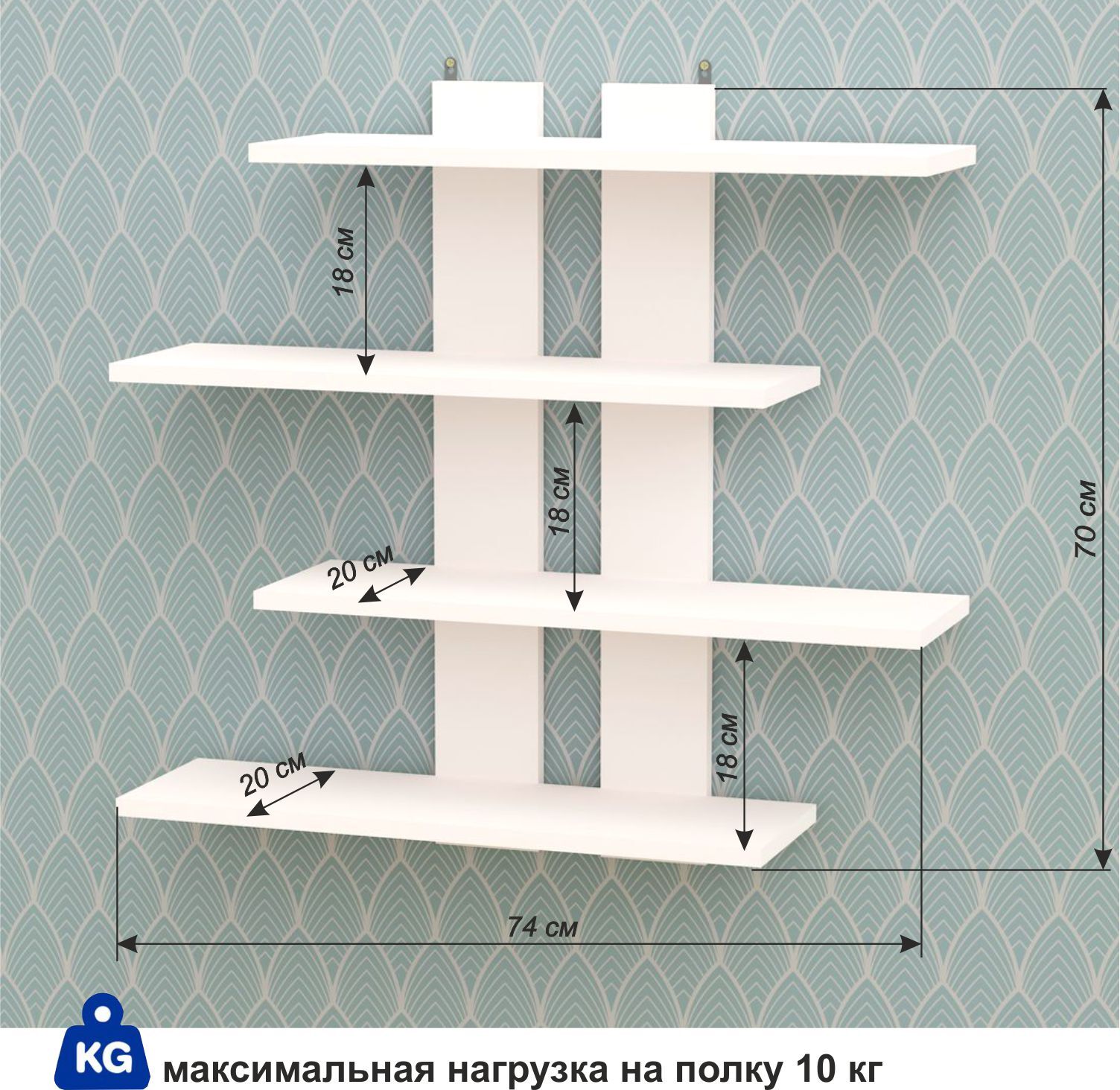 Полка ГайваМебель Настенная Прямая Д34, 74х20х70 см, 1 шт.