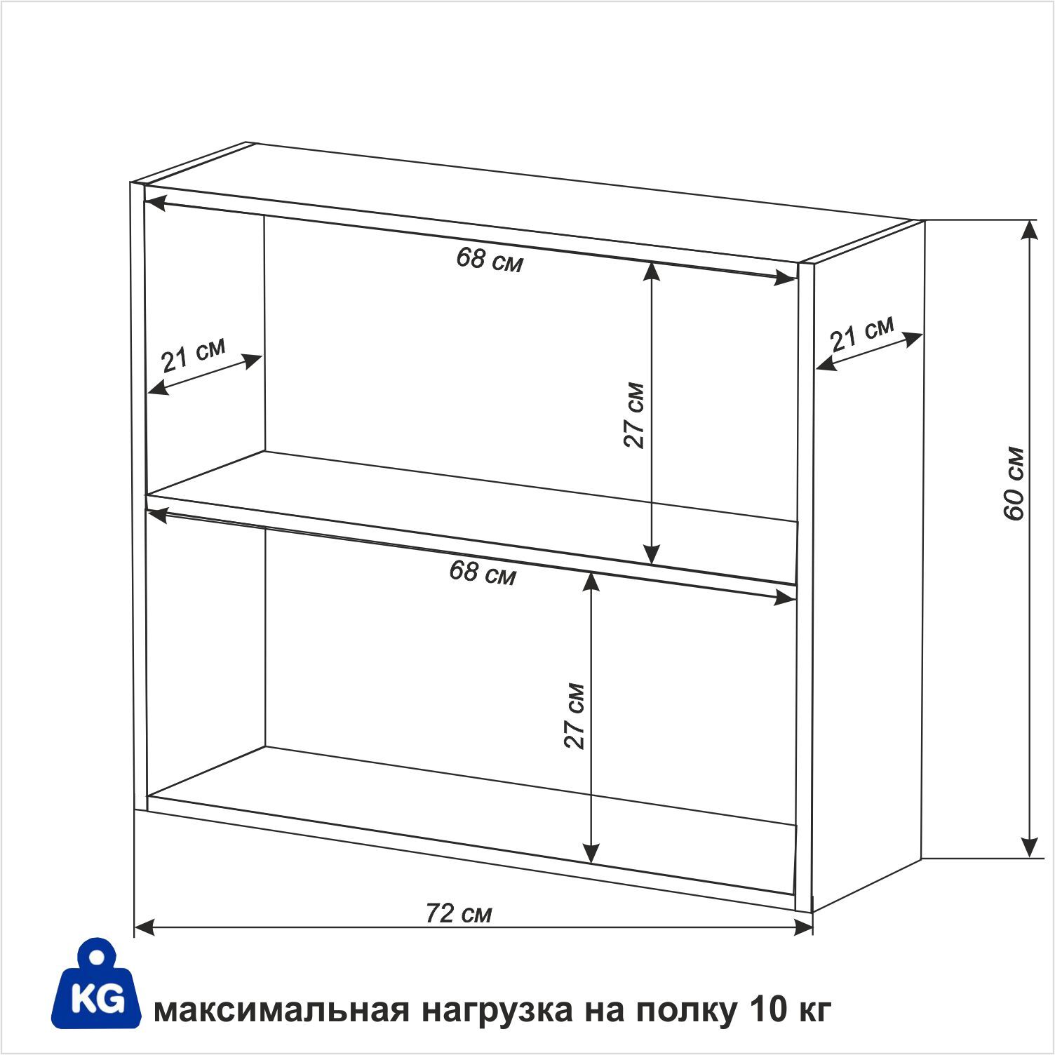 Полка ГайваМебель Настенная Прямая книжная, 72х21х60 см, 1 шт.