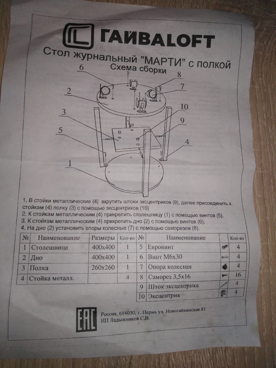 Журнальный стол ГайваМебель НОРД, 62х58х63 см