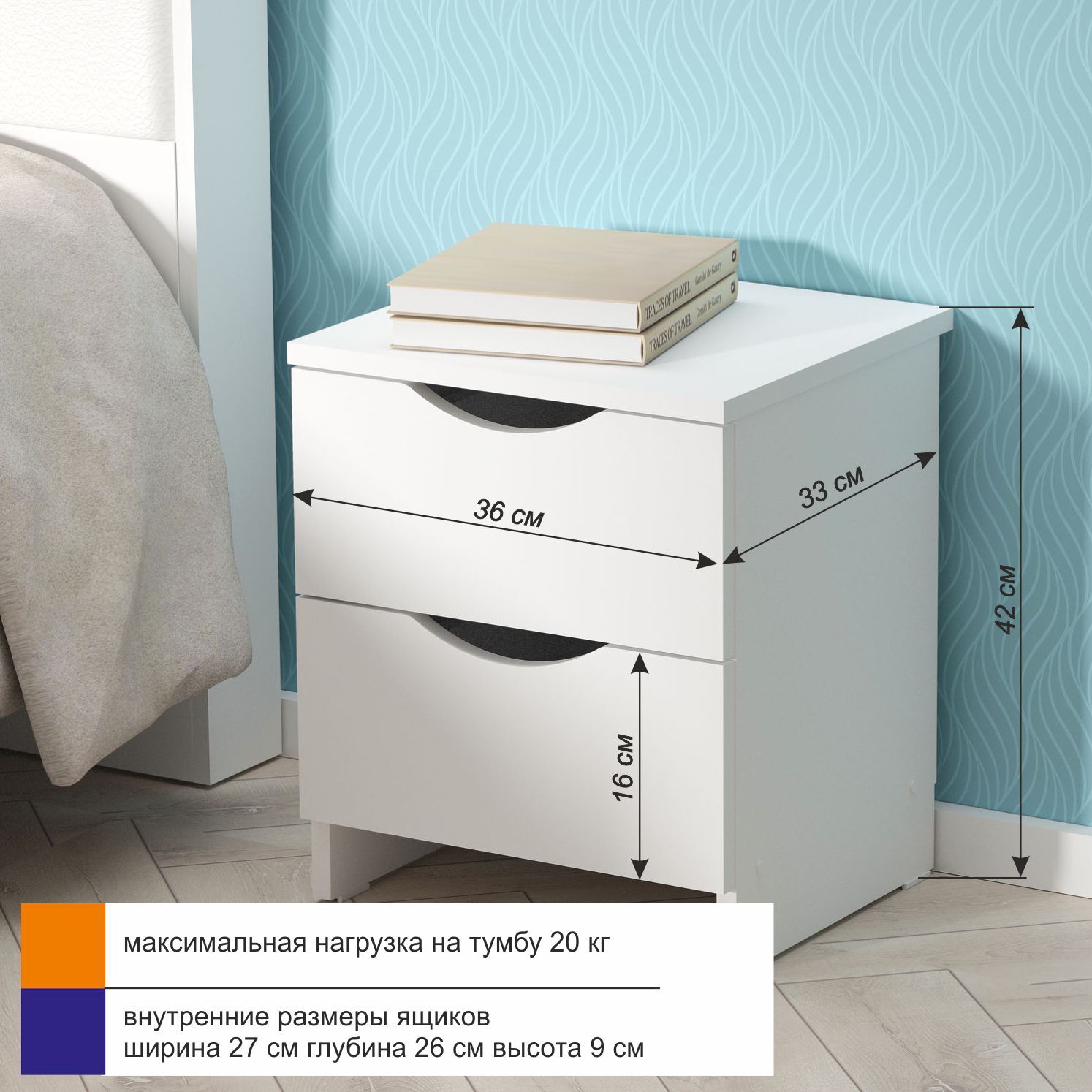 Тумба прикроватная ГайваМебель Компакт 2 ящика, 2 ящ., 36х33х42 см