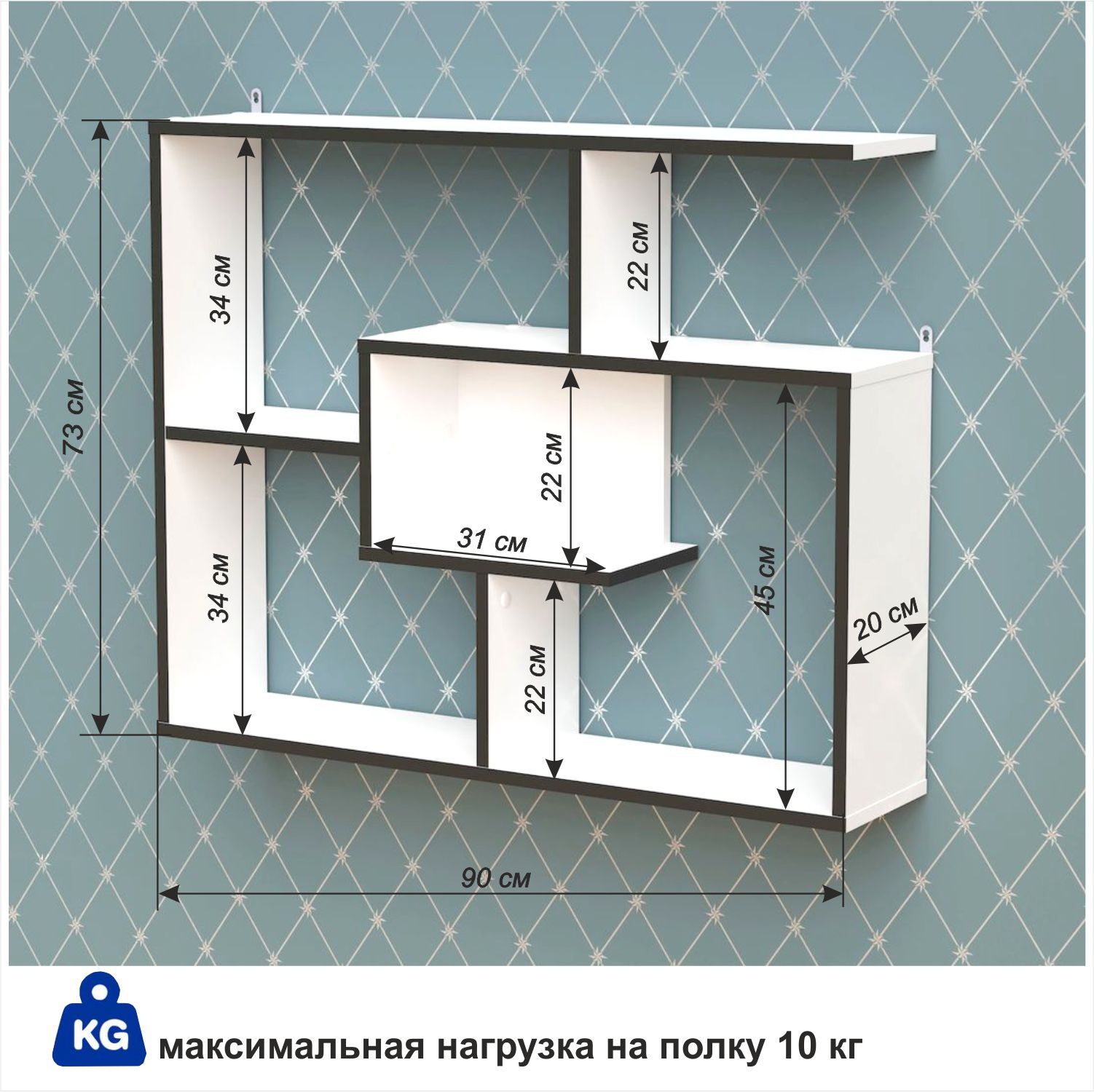 Полка ГайваМебель Настенная Прямая Орион, 90х21х73 см, 1 шт.