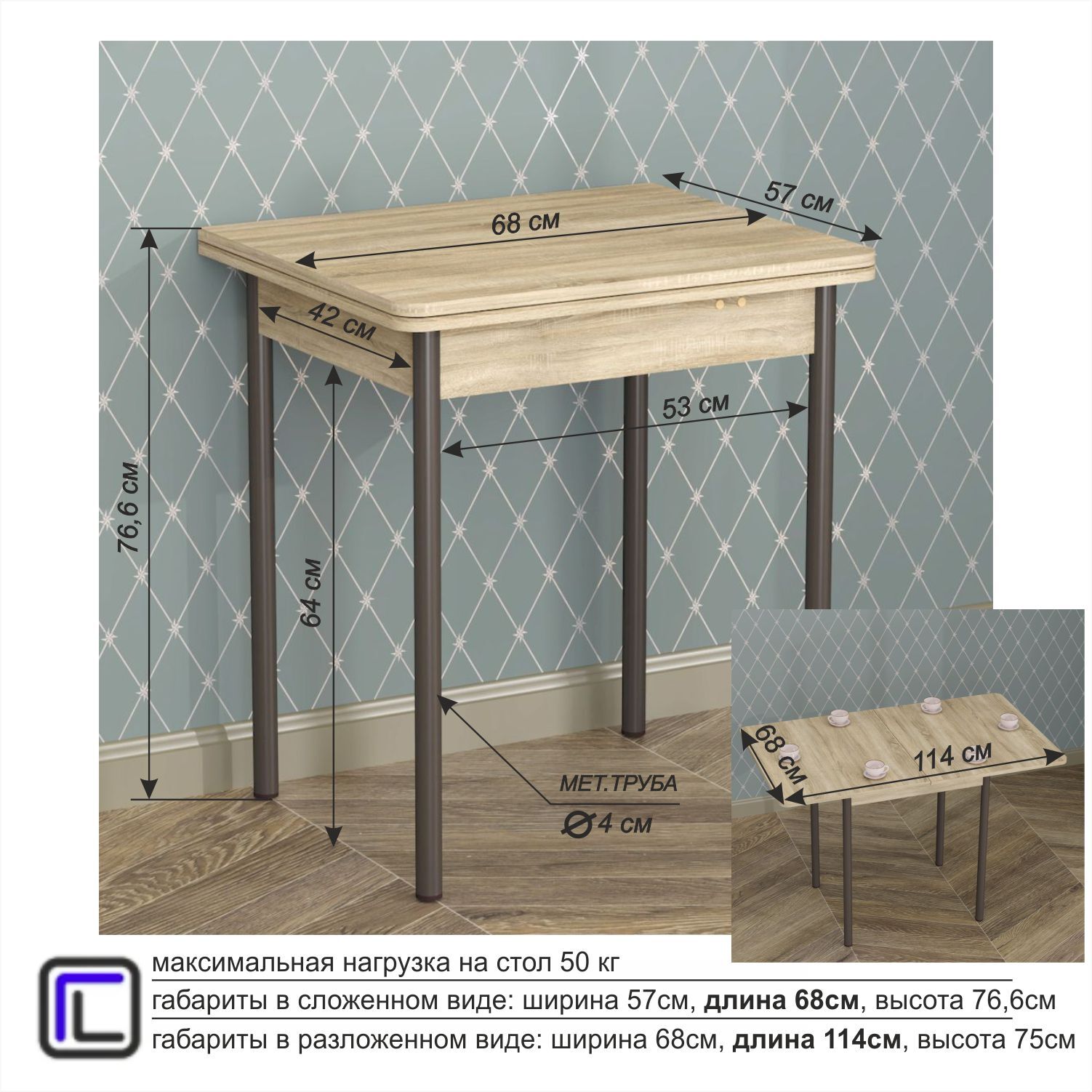 Стол обеденный Раскладной раскладной закругленный, 130х86х75 см