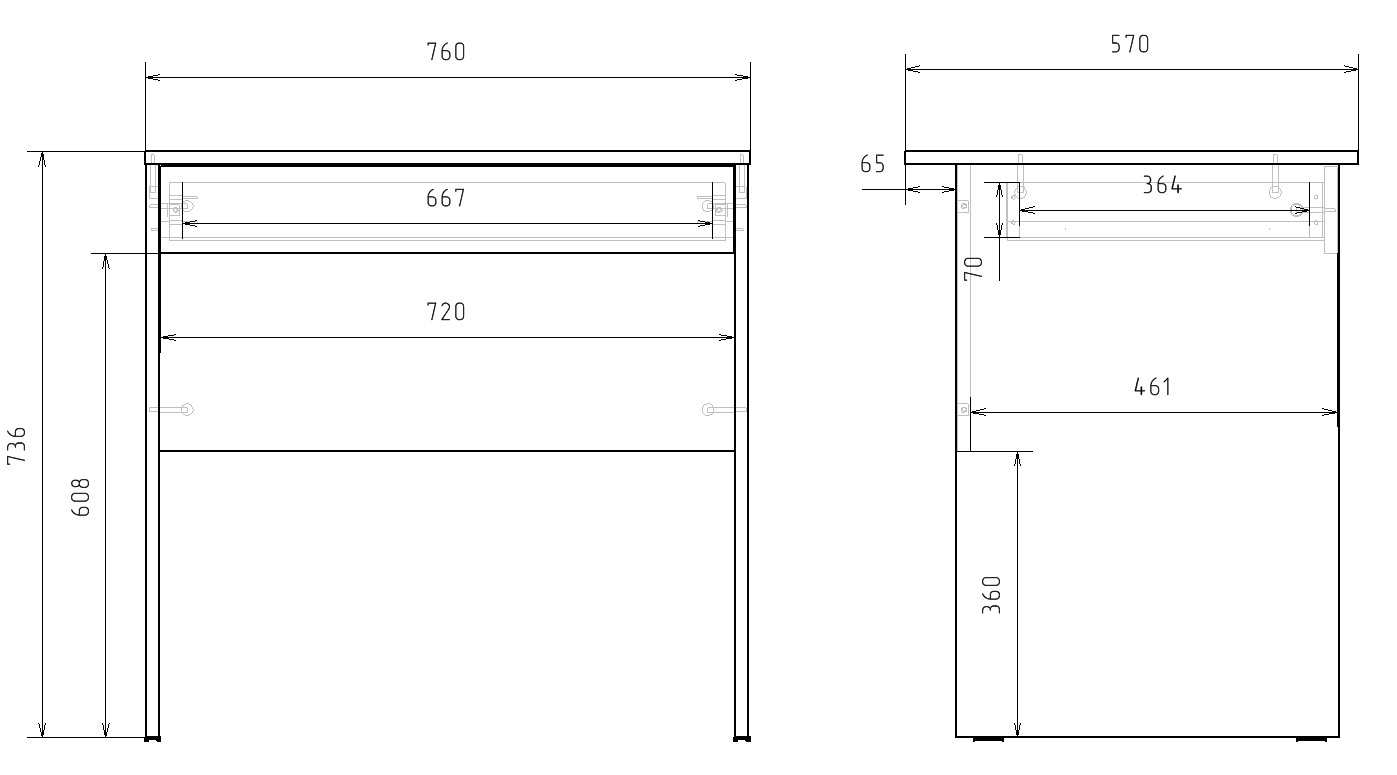 Стол обеденный Нераскладной закругленный с ящиком, 86х57х75 см