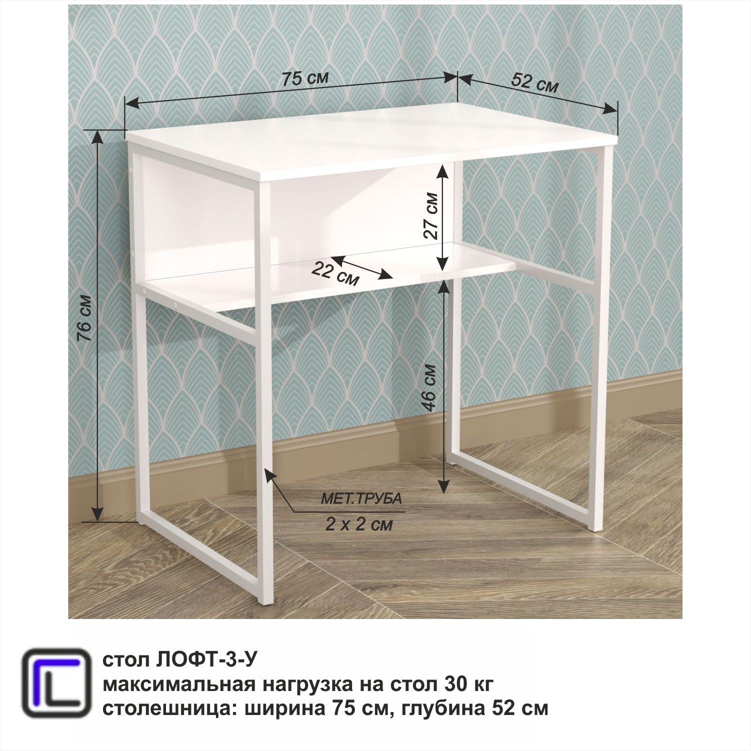 Компьютерный стол, Письменный стол ГайваМебель ЛОФТ-3-У, 75х52х76 см