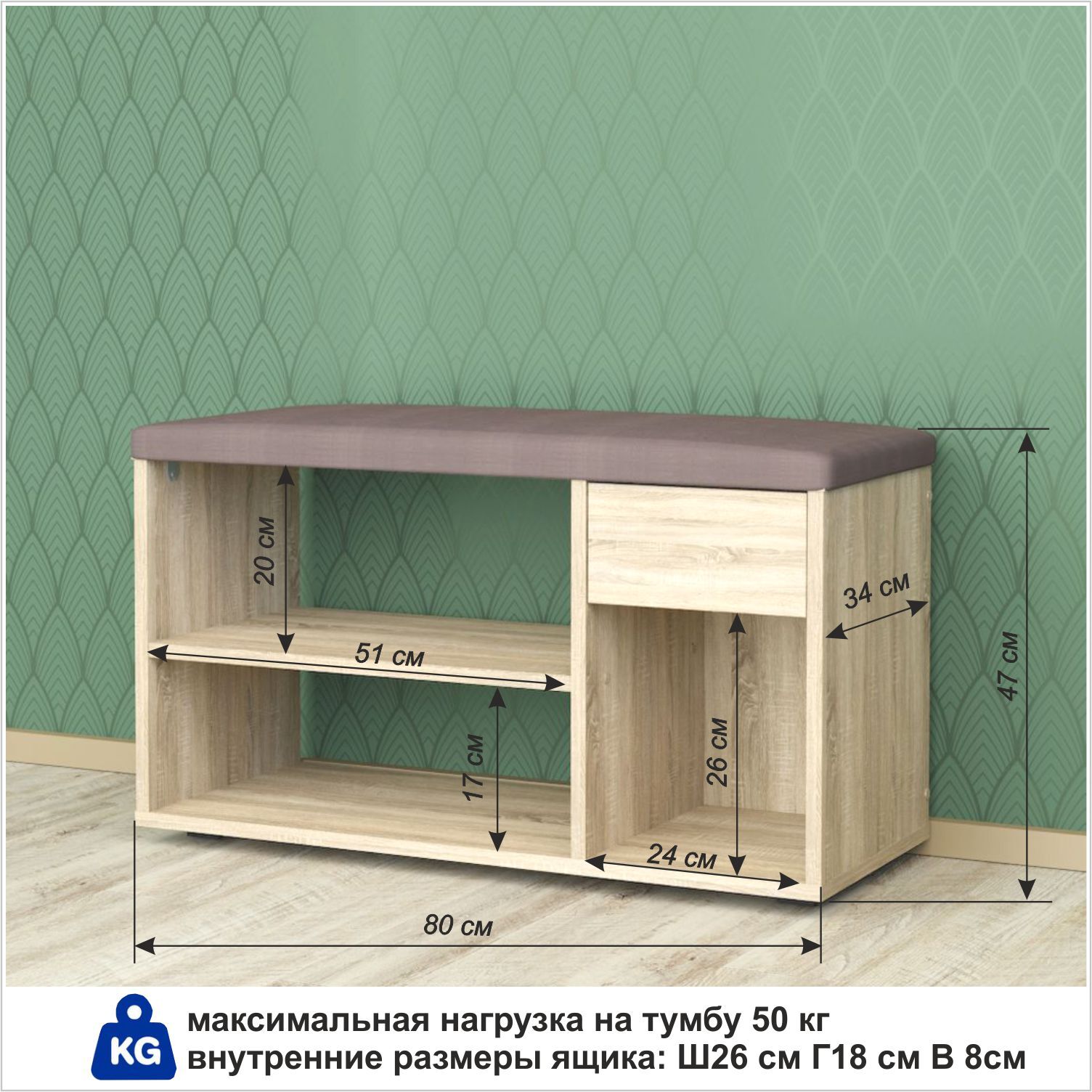 Обувница с ящиком, ЛДСП, 80х34х47 см