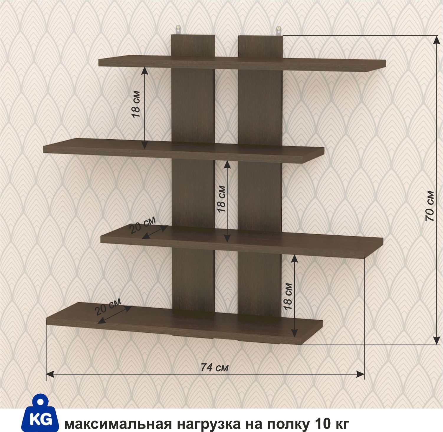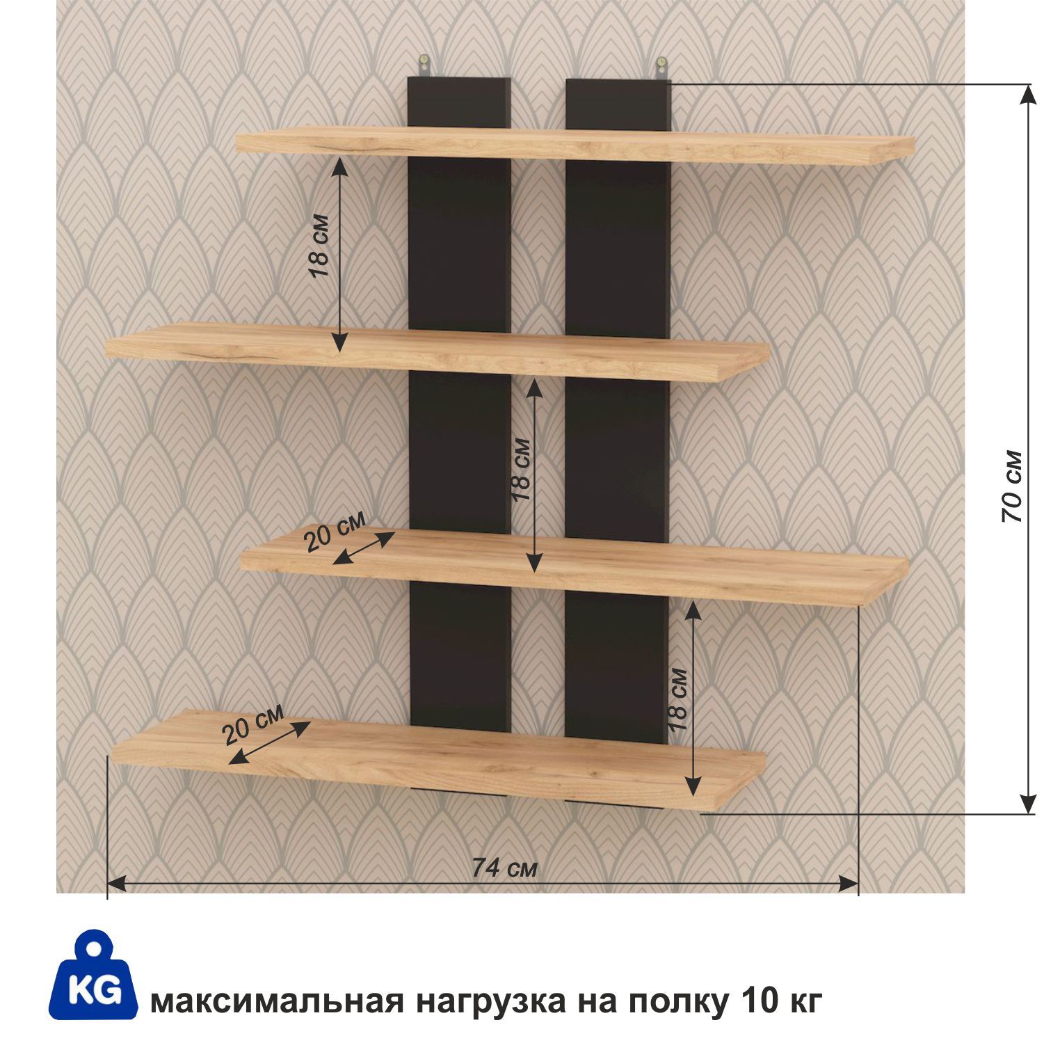 Полка ГайваМебель Настенная Прямая Д34, 74х20х70 см, 1 шт.