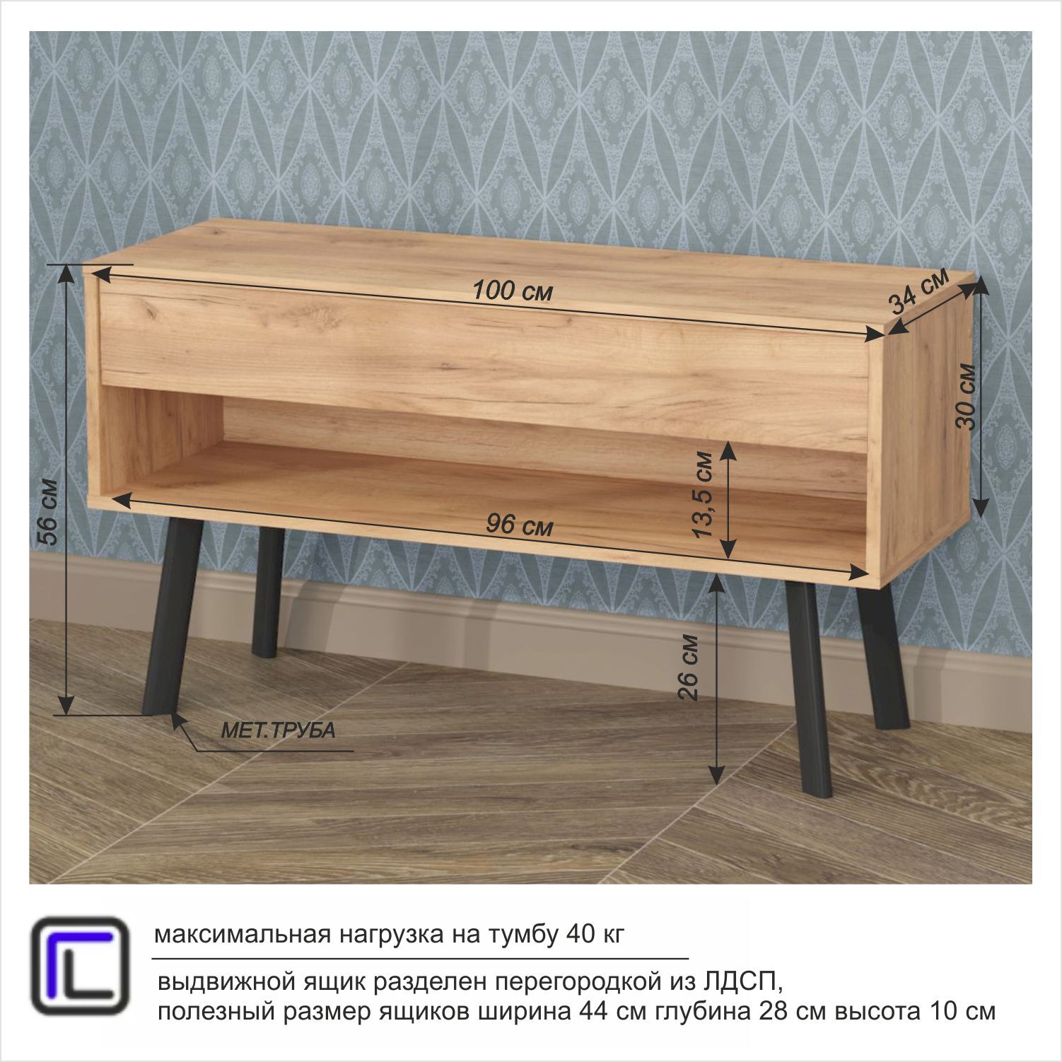 Полка ГайваМебель Настенная Д-54, 60х17х42 см, 1 шт.