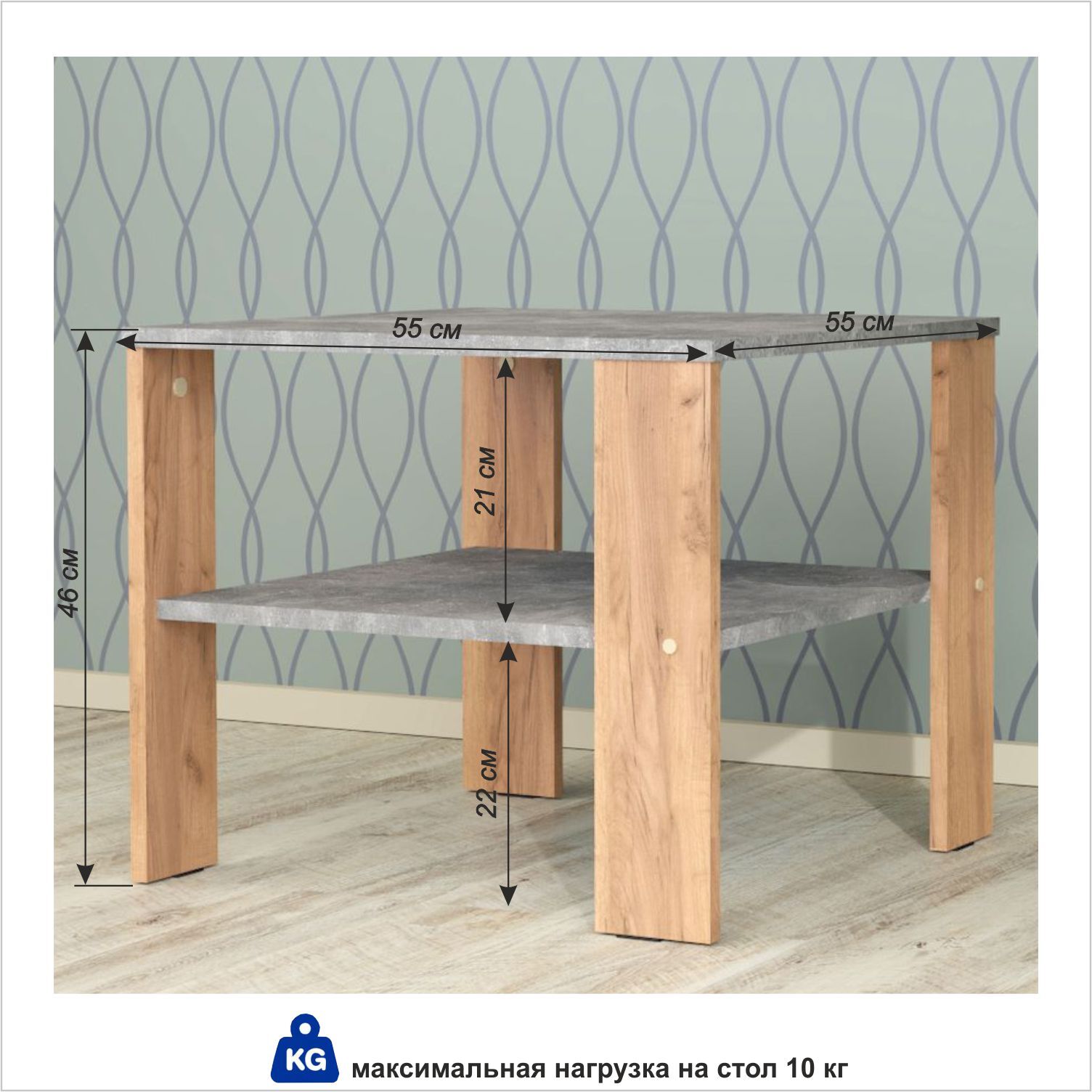 Журнальный стол ГайваМебель АКЦЕНТ С ПОЛКОЙ, 60х58х55 см